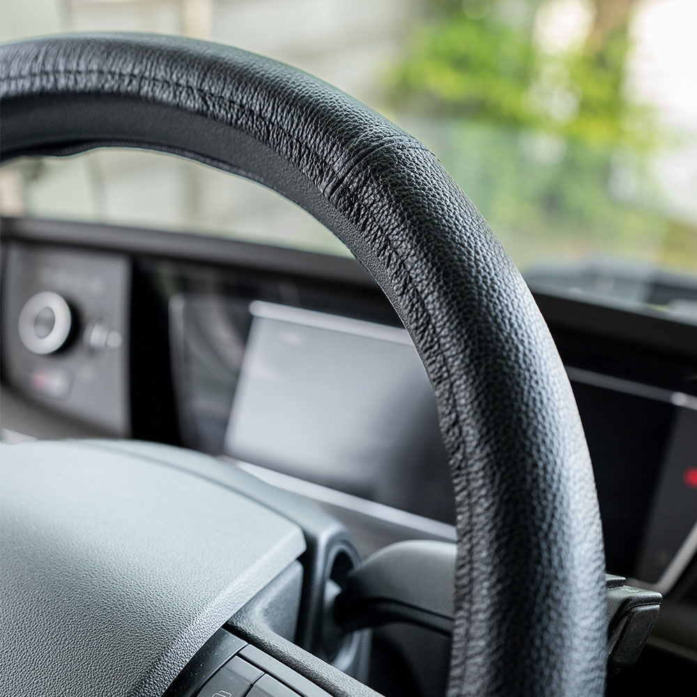 Tip produs: husa volan auto Material: piele Culoare: negru Dimensiune: 47-48 cm
