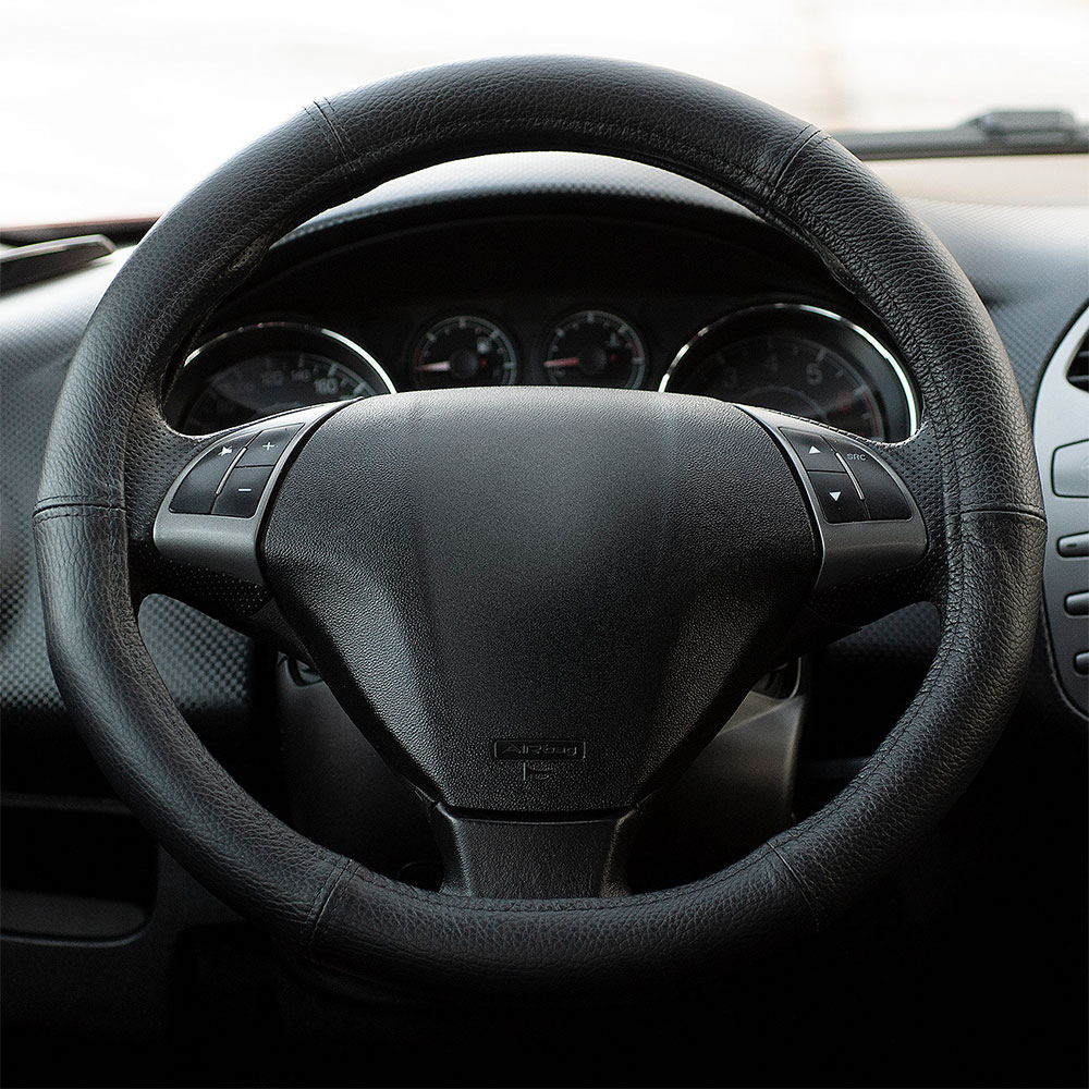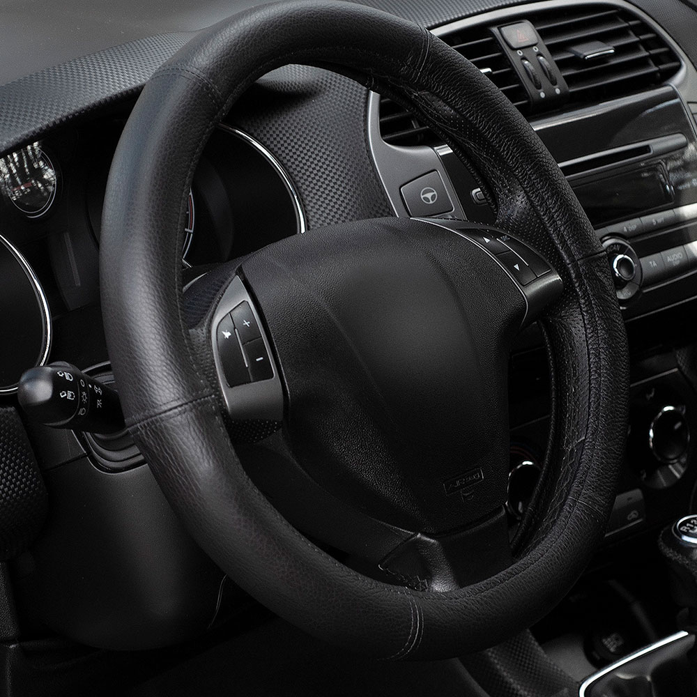 Tip produs: husa volan auto Material: piele Culoare: negru Dimensiune: 49-50 cm