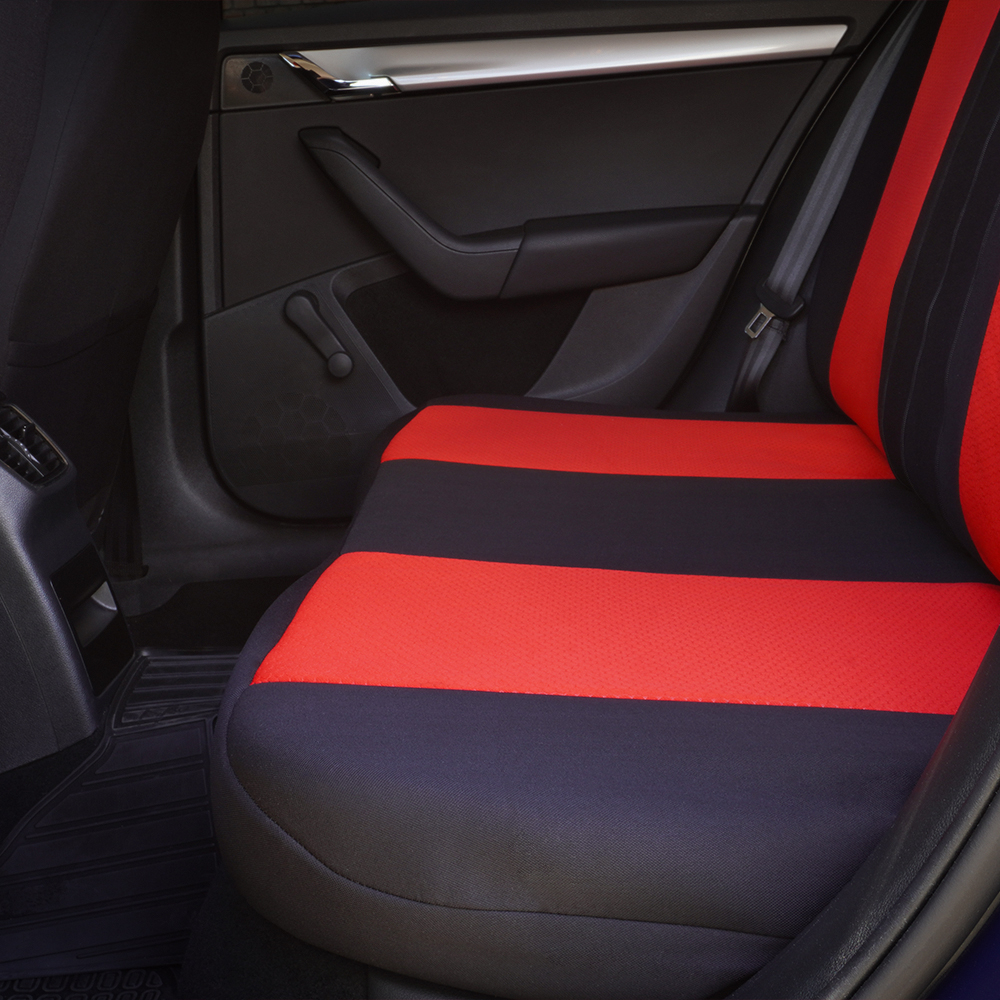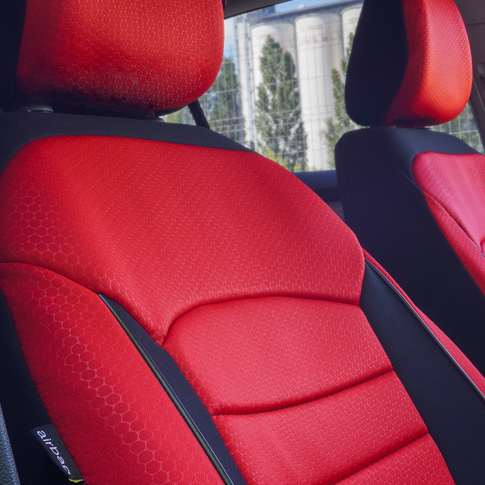 Huse din material textil dublu laminat similar cu tapiteriile originale, cu insertii de piele ecologica si ambele fete dublate cu burete (grosime 5mm)
