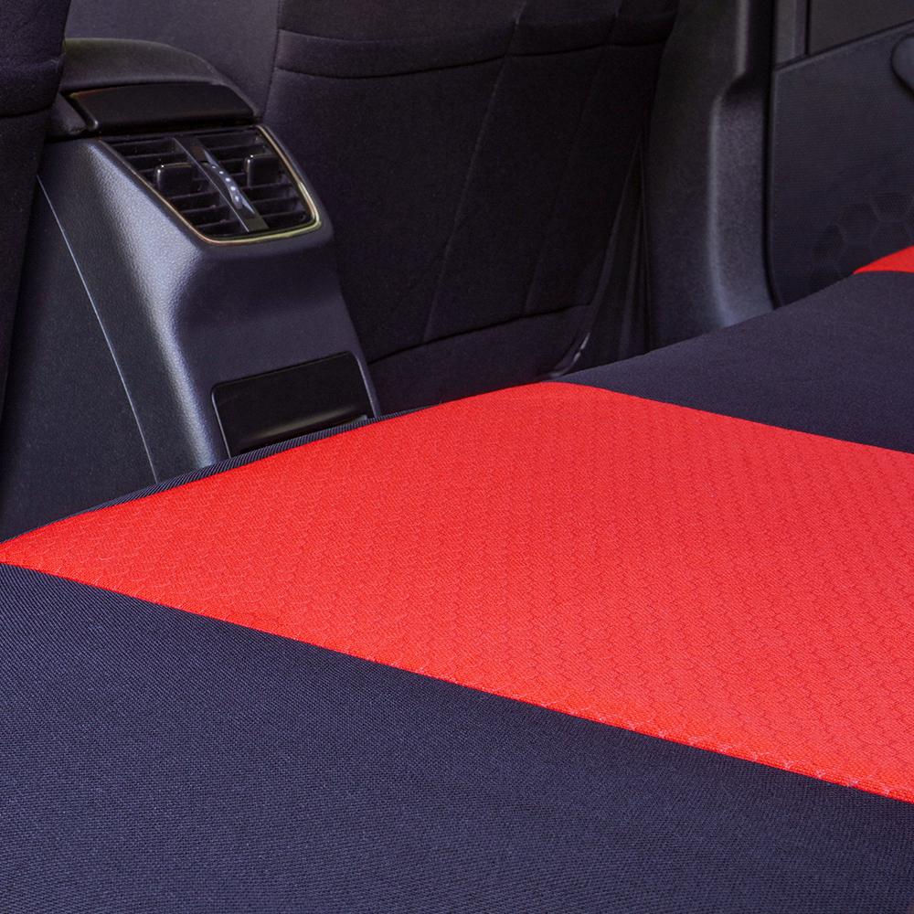 Husa bancheta spate este prevazuta cu 3 fermoare, care faciliteaza accesul la cotiera si rabatarea banchetei (1/3 sau 2/3 din latime)