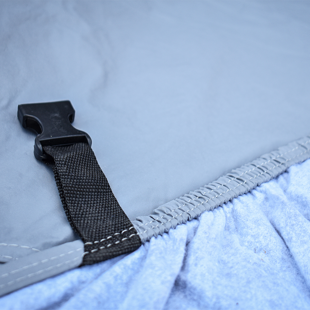 Material cu strat dublu 100% impermeabil (stratul exterior este foarte rezistent, cu captuseala moale in interior, anti-zgarieturi). Prevazuta cu doua corzi elastice pentru o fixare usoara. Buzunar oglinda. Husa pentru depozitare. Material: Bumbac + PEVA