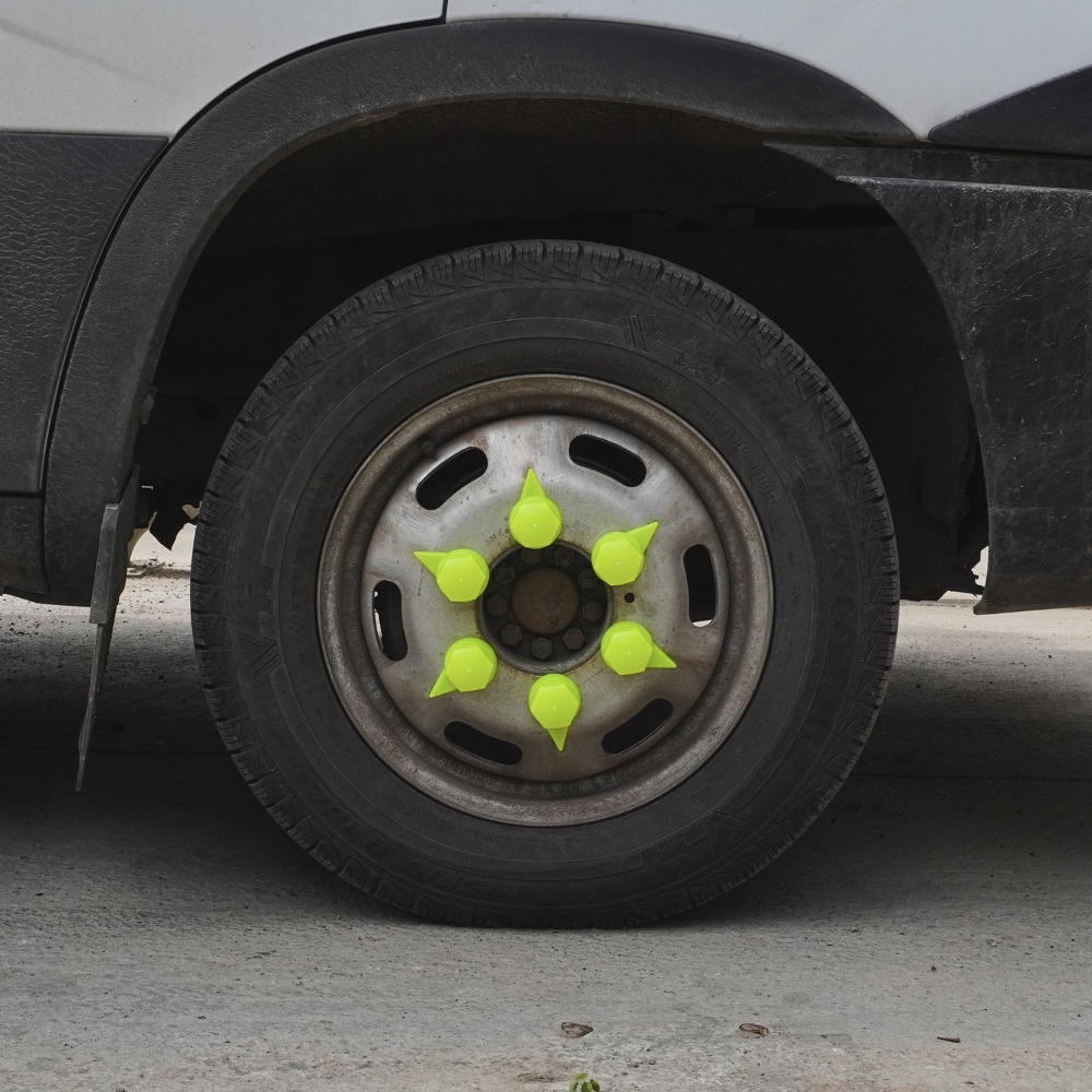 MEGA DRIVE SET 10 BUCATI CAPAC PLASTIC PENTRU PREZON ROATA CU INDICATOR 33 MM NEON GALBEN 41 MM