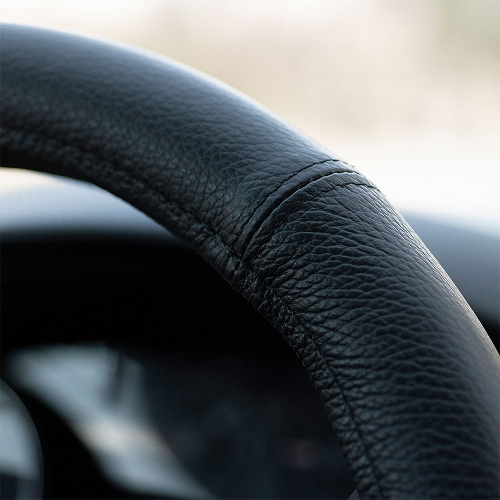 Husa pentru volan din piele naturala. Are un design nou care confera confort maxim in timpul condusului. Aceasta este fabricata din piele naturala de culoare neagra si are dimensiunea de 37-39 cm.