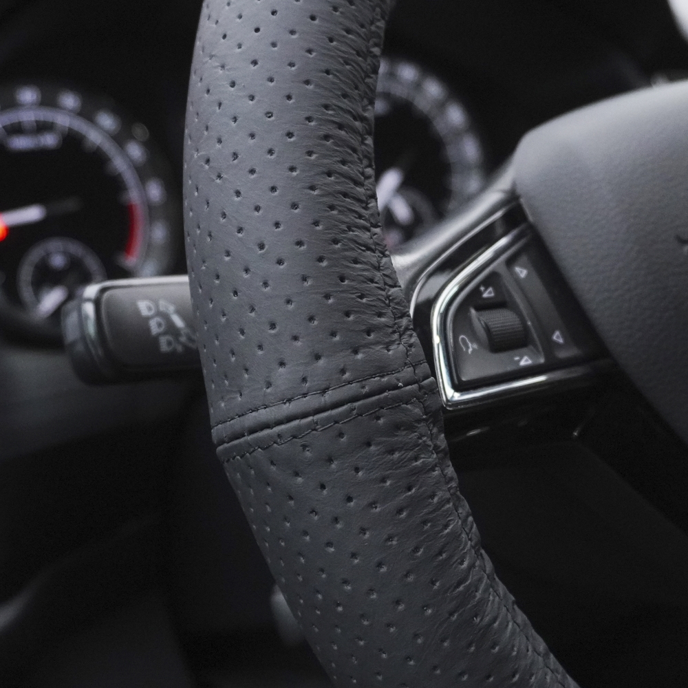 HUSA VOLAN PIELE NATURALA PERFORATA NEGRU 35-37 CM. 10060CP
