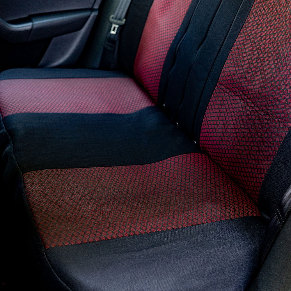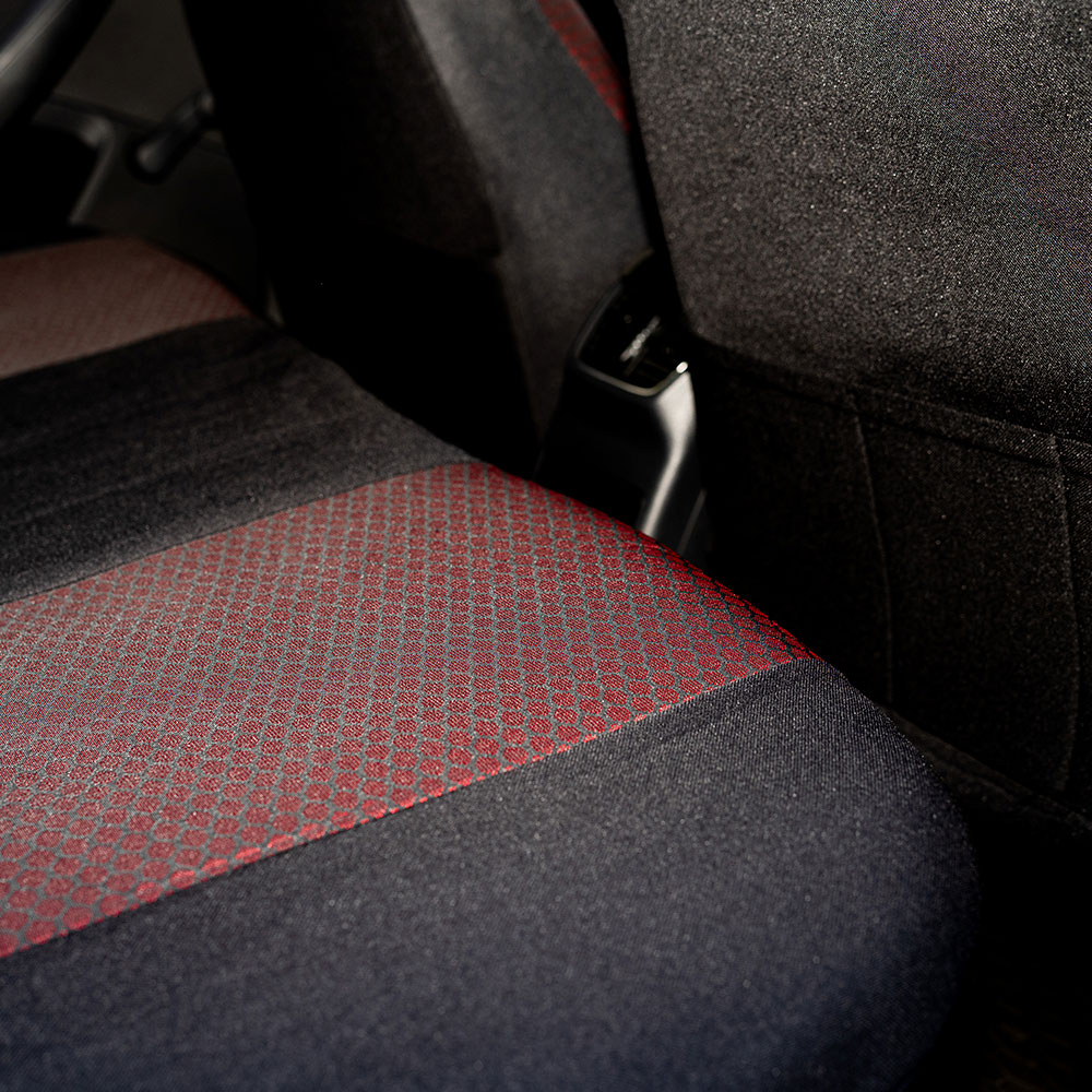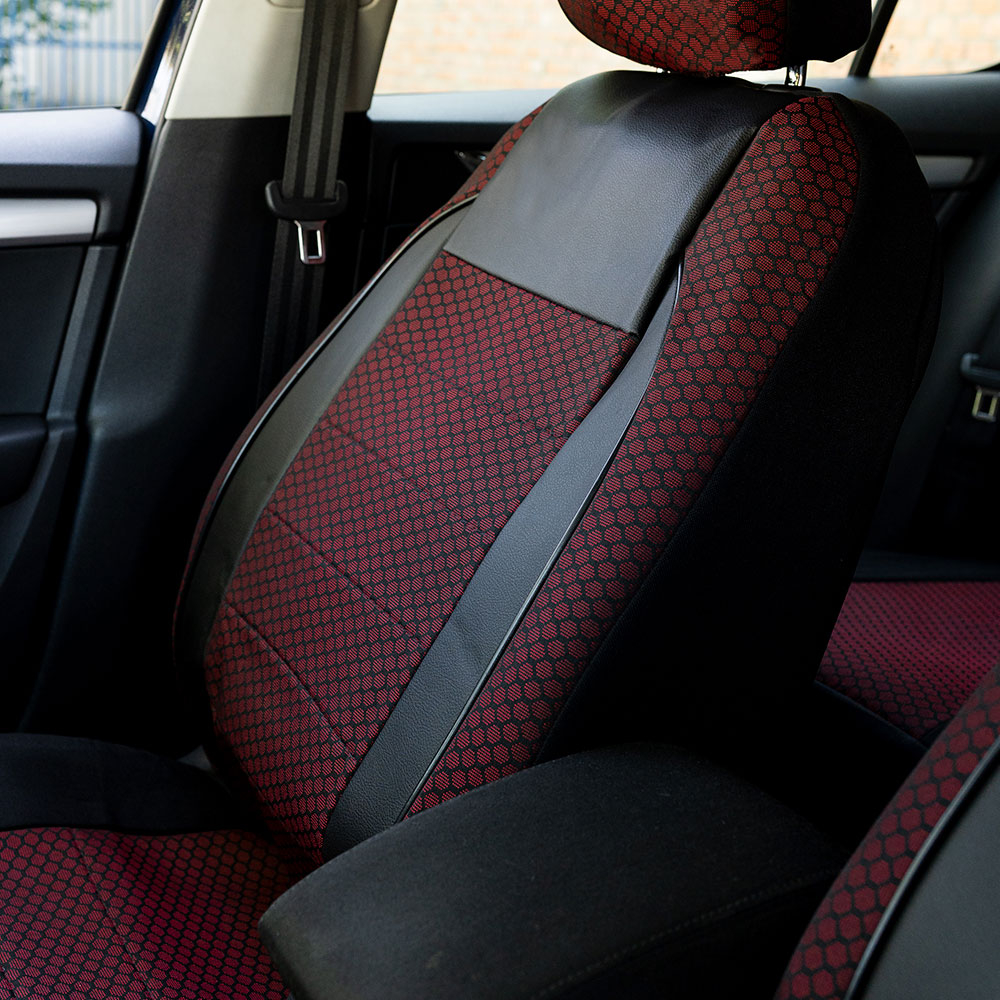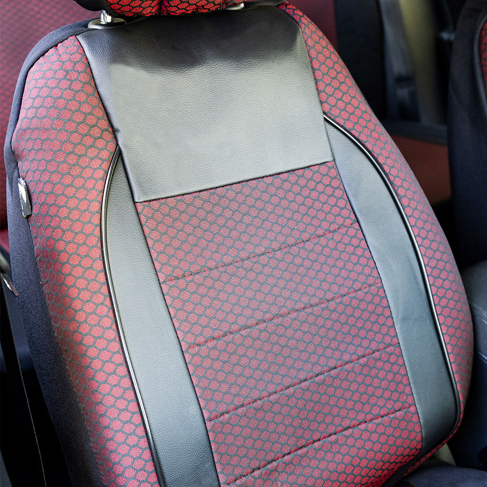Huse din material textil dublu laminat similar cu tapiteriile originale, cu insertii de piele ecologica si ambele fete dublate cu burete (grosime 5mm)