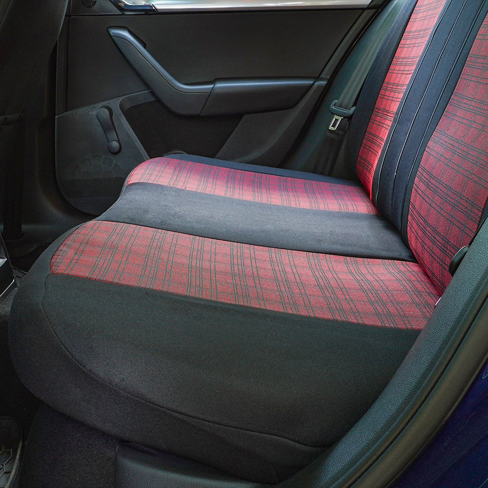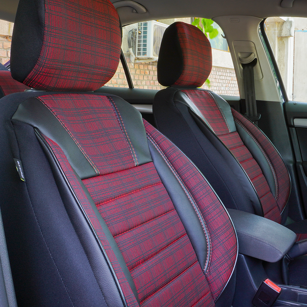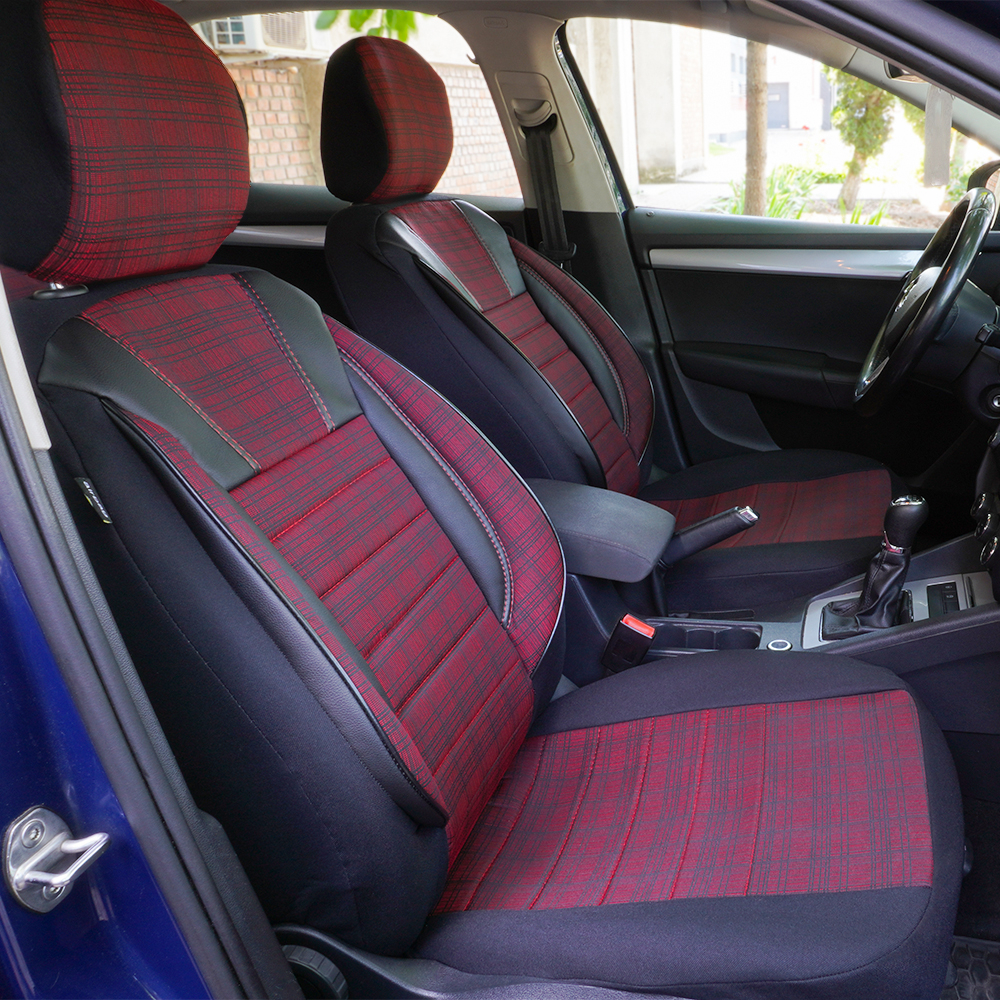 Huse din material textil dublu laminat similar cu tapiteriile originale, cu insertii de piele ecologica si ambele fete dublate cu burete (grosime 5mm)