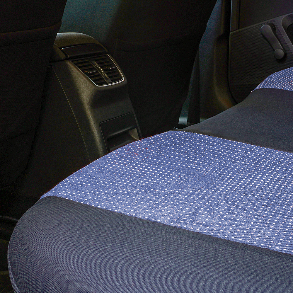 Husa bancheta spate este prevazuta cu 3 fermoare, care faciliteaza accesul la cotiera si rabatarea banchetei (1/3 sau 2/3 din latime)