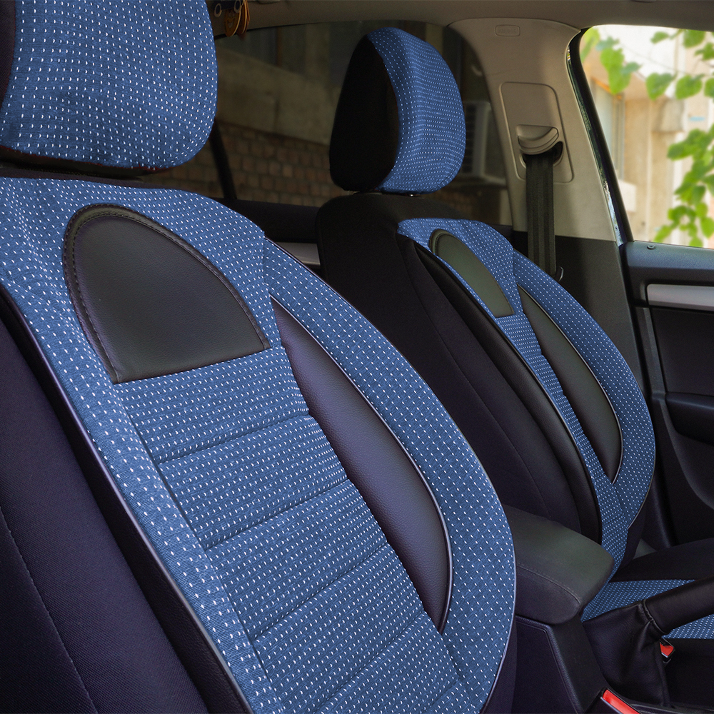 Huse din material textil dublu laminat similar cu tapiteriile originale, cu insertii de piele ecologica si ambele fete dublate cu burete (grosime 5mm)