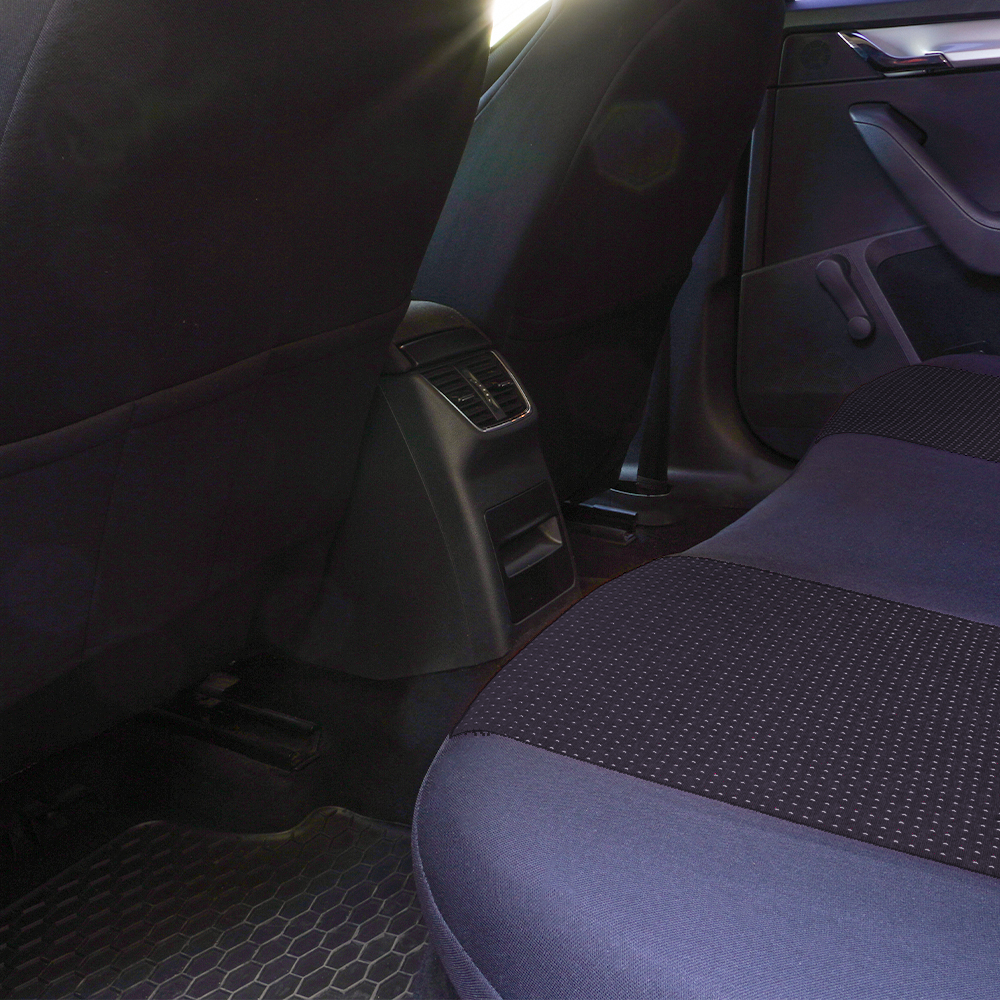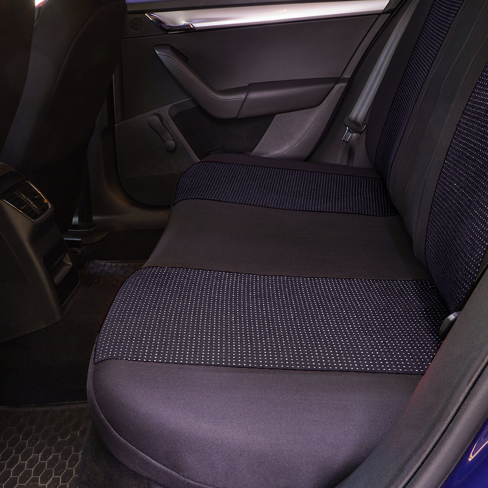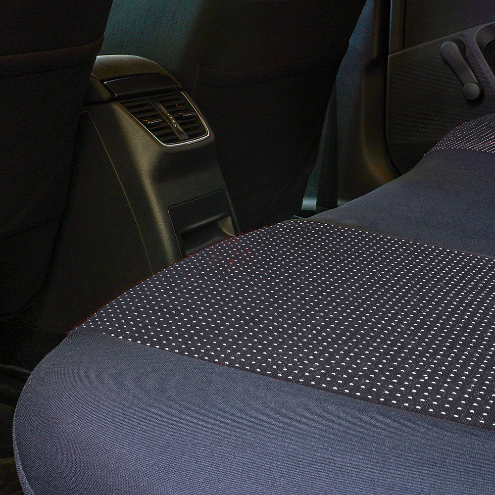Husa bancheta spate este prevazuta cu 3 fermoare, care faciliteaza accesul la cotiera si rabatarea banchetei (1/3 sau 2/3 din latime)