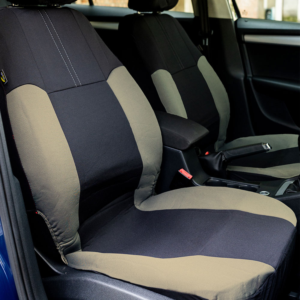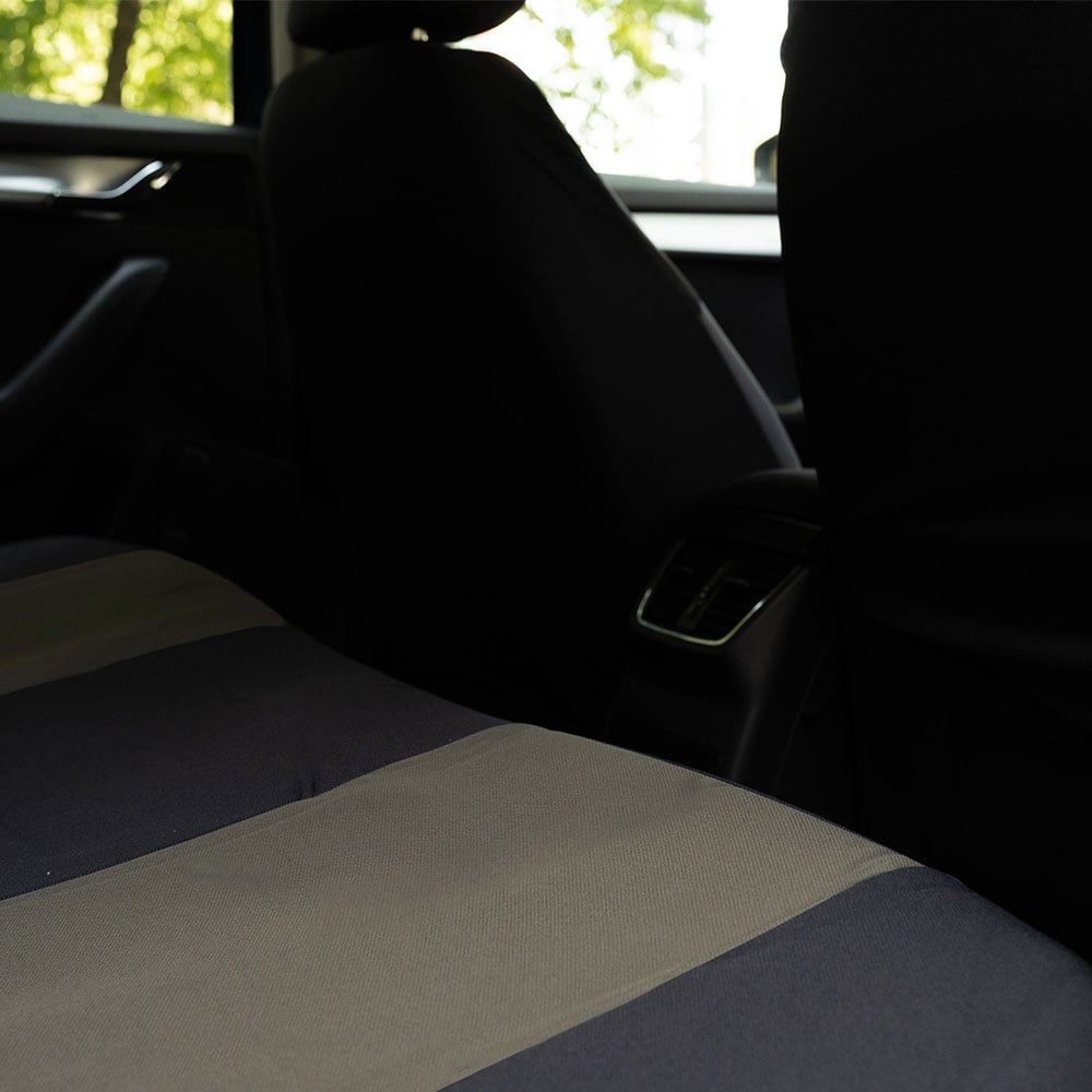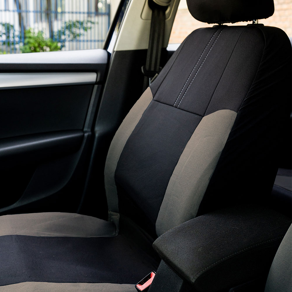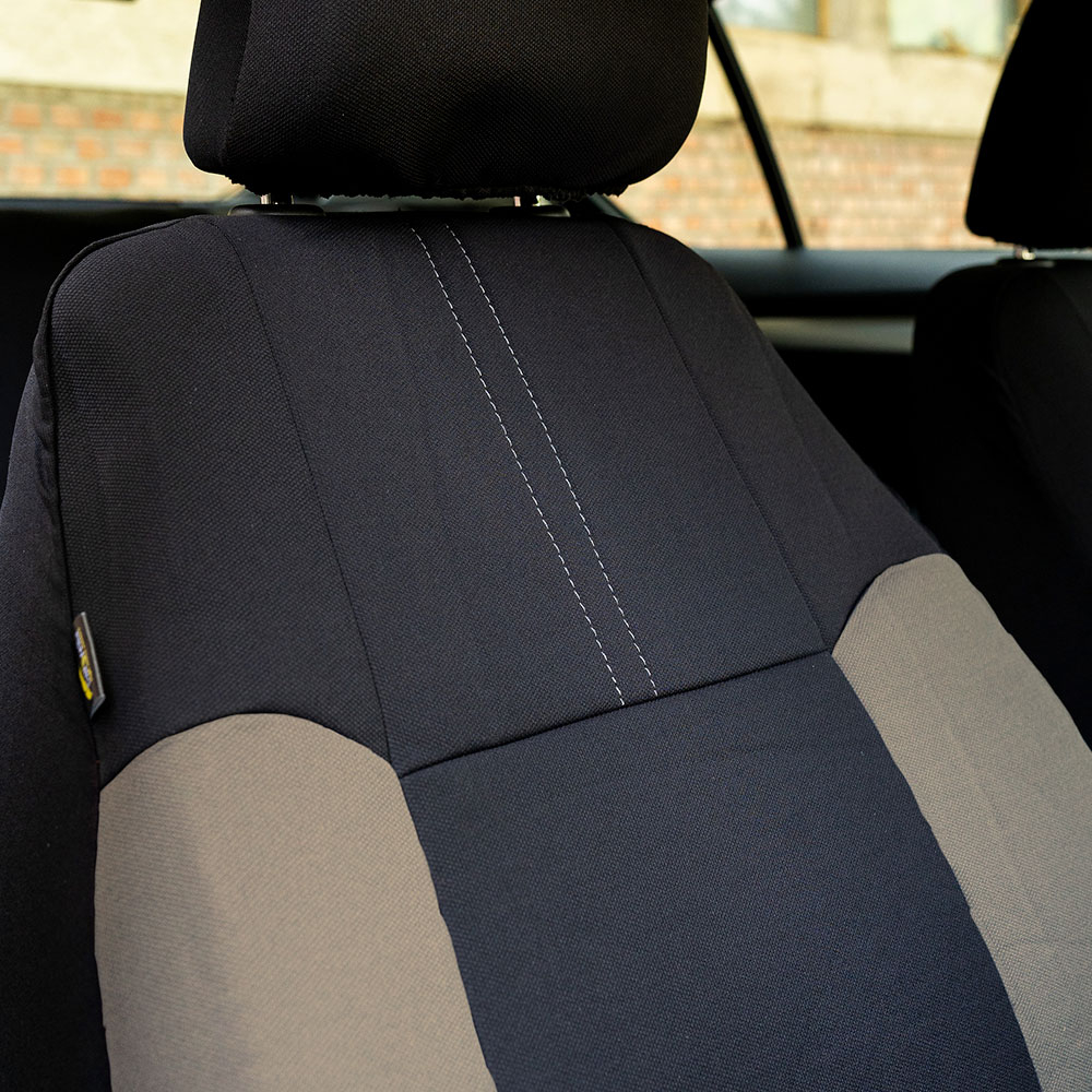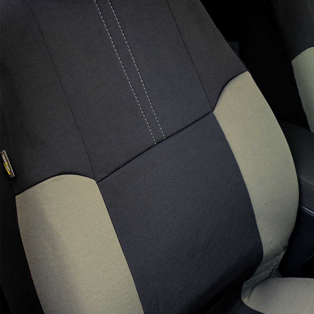 Huse din material textil dublu laminat similar cu tapiteriile originale, cu insertii de piele ecologica si ambele fete dublate cu burete (grosime 5mm)