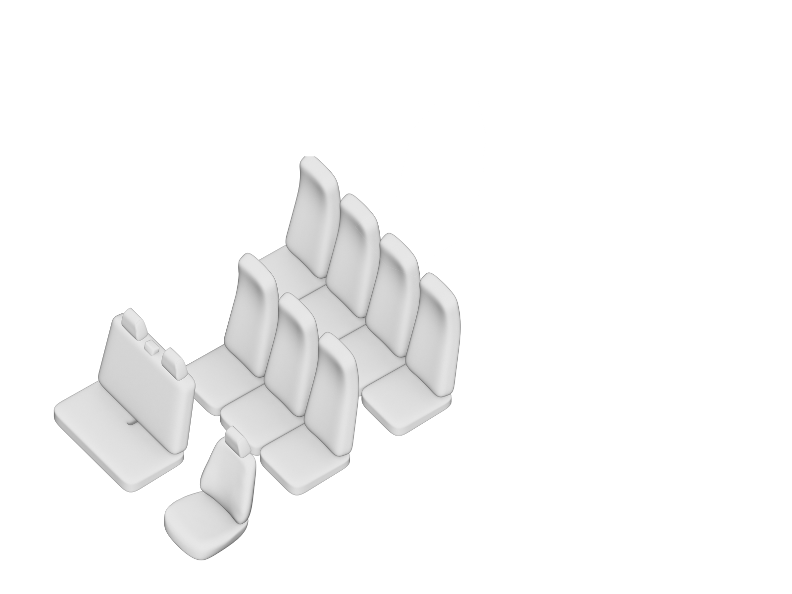 Modelul este compatibil 100% cu scaunul auto original, iar designul este similar cu acesta, asigurand functionalitatea dotarilor existente: bancheta fata nefractionata, randul 1 spate scaune individuale (1+1+1), randul 2 spate scaune individuale (1+1+1+1), centuri, manere de rabatare, gauri tetiere, etc.