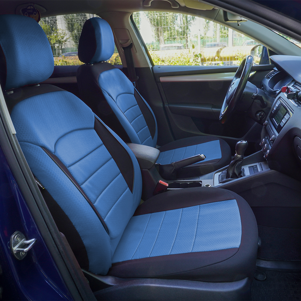 Huse din material textil dublu laminat similar cu tapiteriile originale, cu insertii de piele ecologica si ambele fete dublate cu burete (grosime 5mm)