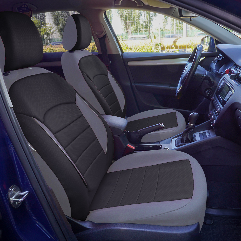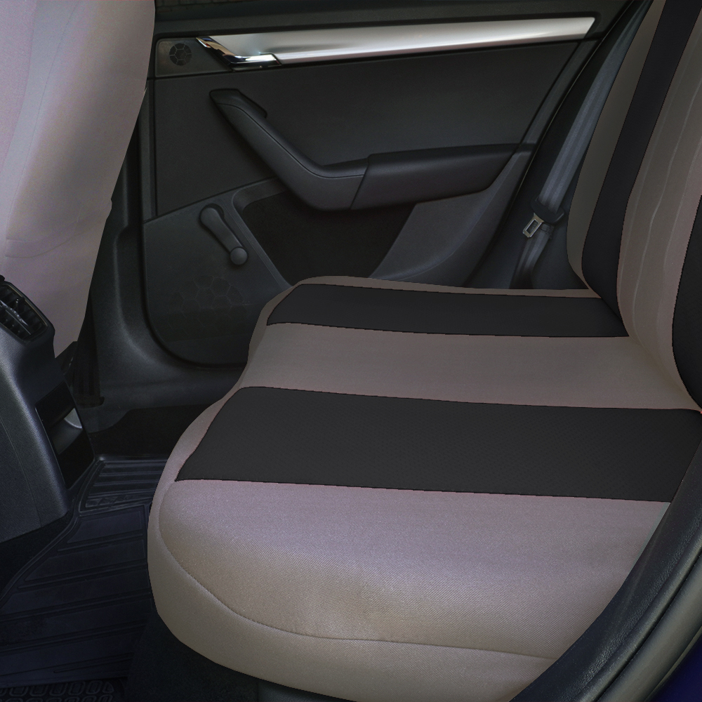 Huse din material textil dublu laminat similar cu tapiteriile originale, cu insertii de piele ecologica si ambele fete dublate cu burete (grosime 5mm)