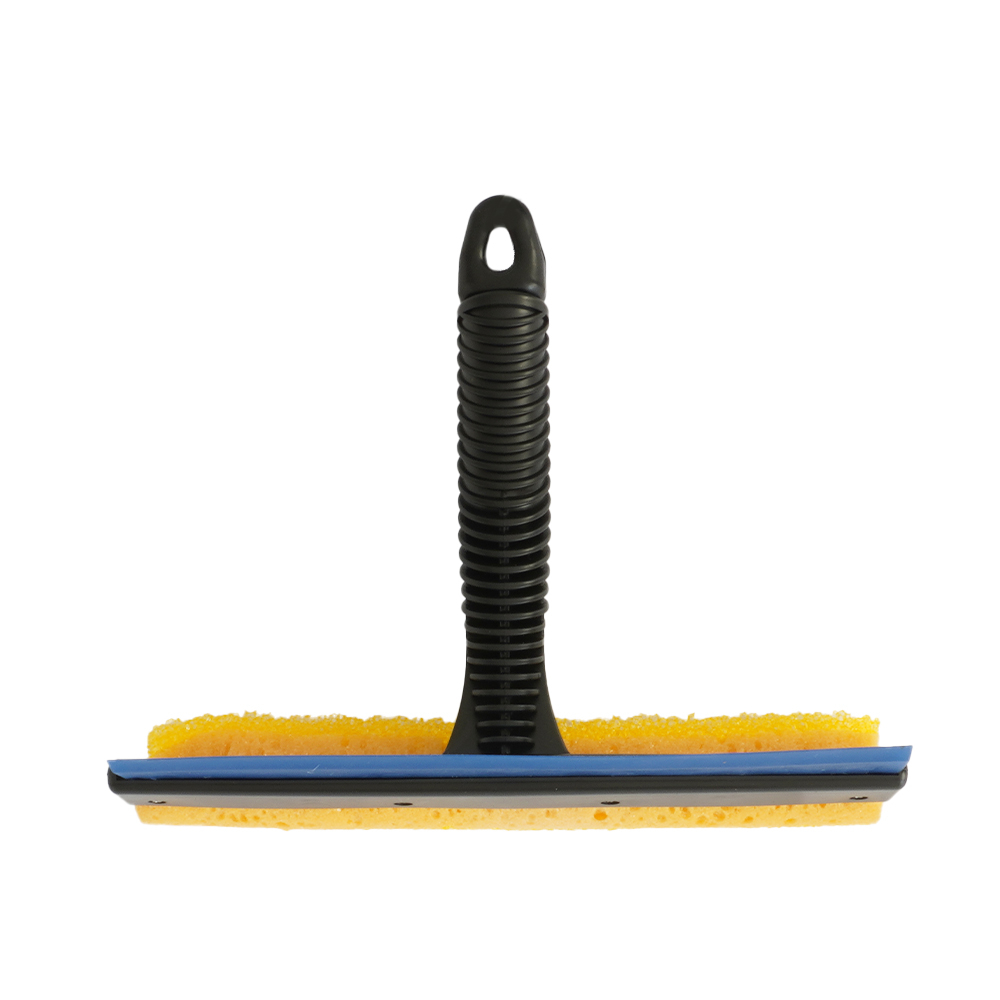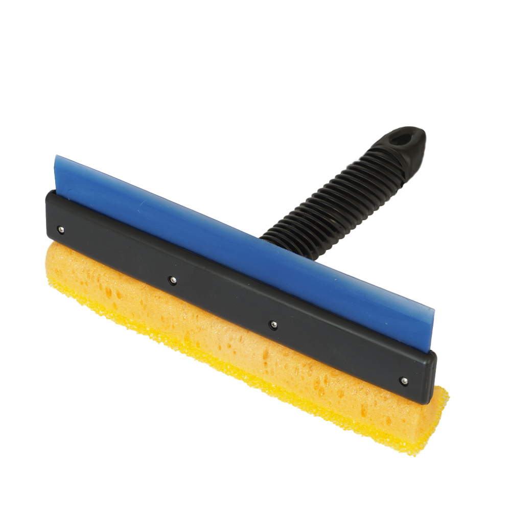 Curatitor cu maner scurt cu lamela cauciuc si burete pentru spalarea si indepartarea insectelor de pe geamuri indeparteaza lichidul de spalare si apa de pe suprafete din sticla