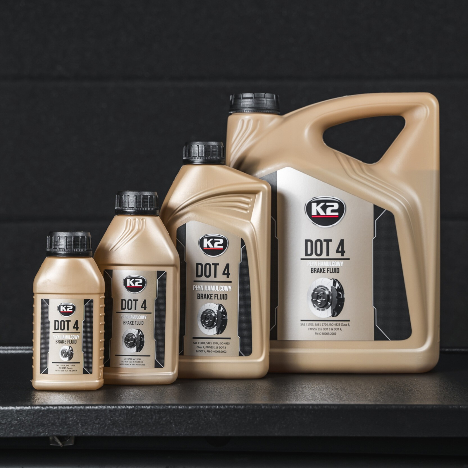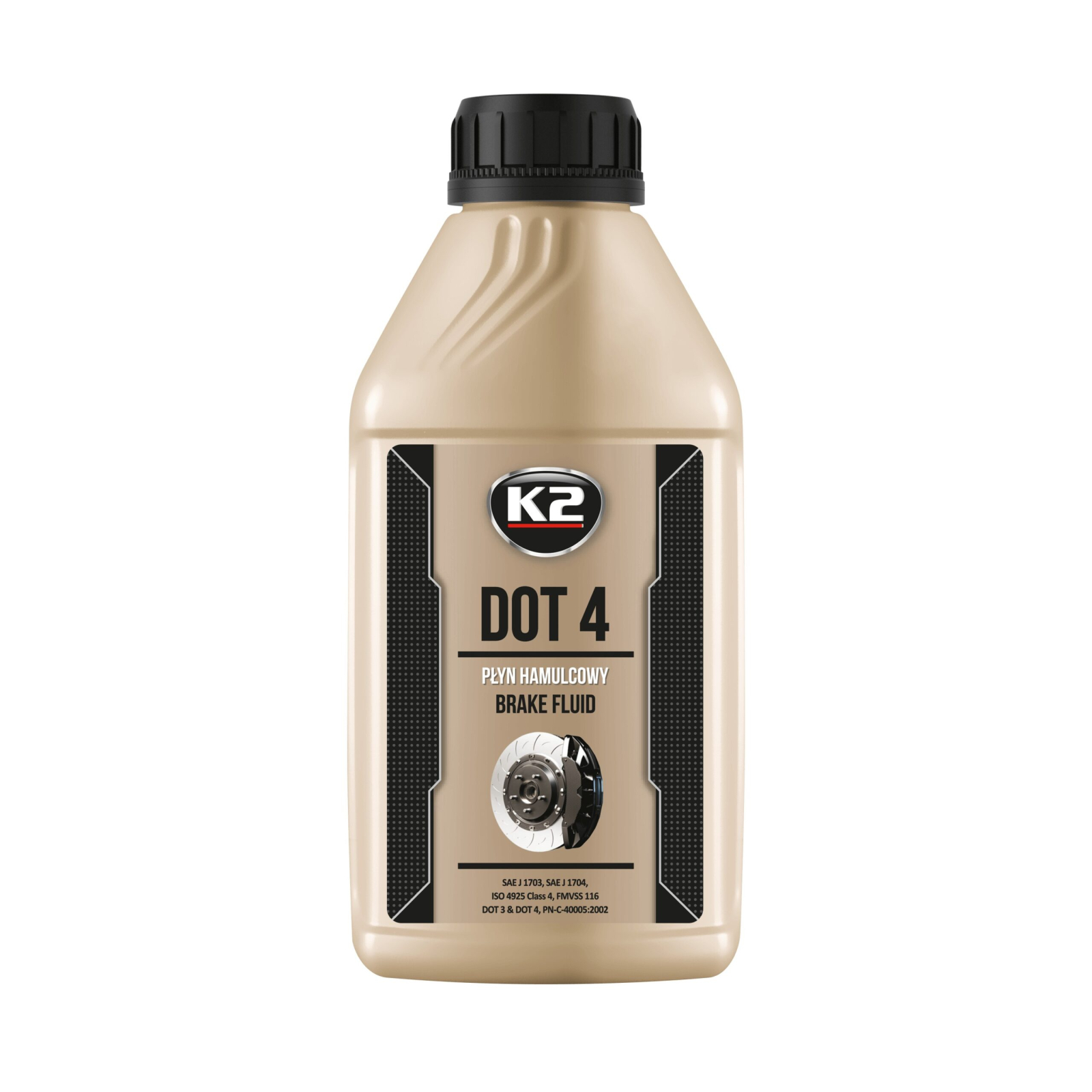 Lichidul de frana DOT 4 are parametri reologici excelenti care permit utilizarea la temperaturi foarte scazute. Este neutru față de garniturile și aliajele metalice utilizate în sistemul de frânare și îl protejează împotriva coroziunii. Lichidul de frână K2 DOT 4 are un punct de fierbere care depășește 230 de grade C, datorită căruia își păstrează proprietățile mai mult timp. Produsul este complet miscibil cu alte fluide din clasa DOT.