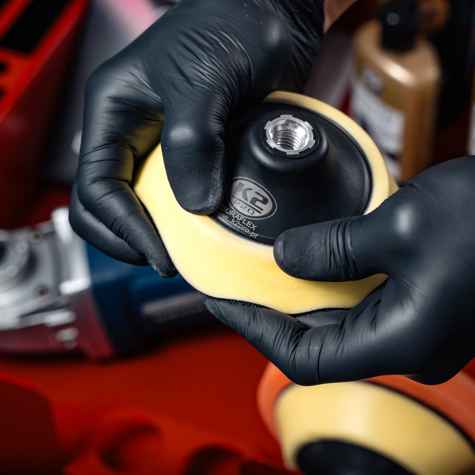 Un suport pentru montarea discurilor de lustruit. Fabricat dintr-un material flexibil, datorită căruia tamponul este în contact constant cu suprafața. Funcționează perfect cu bureții de lustruit, blănuri și materiale abrazive.