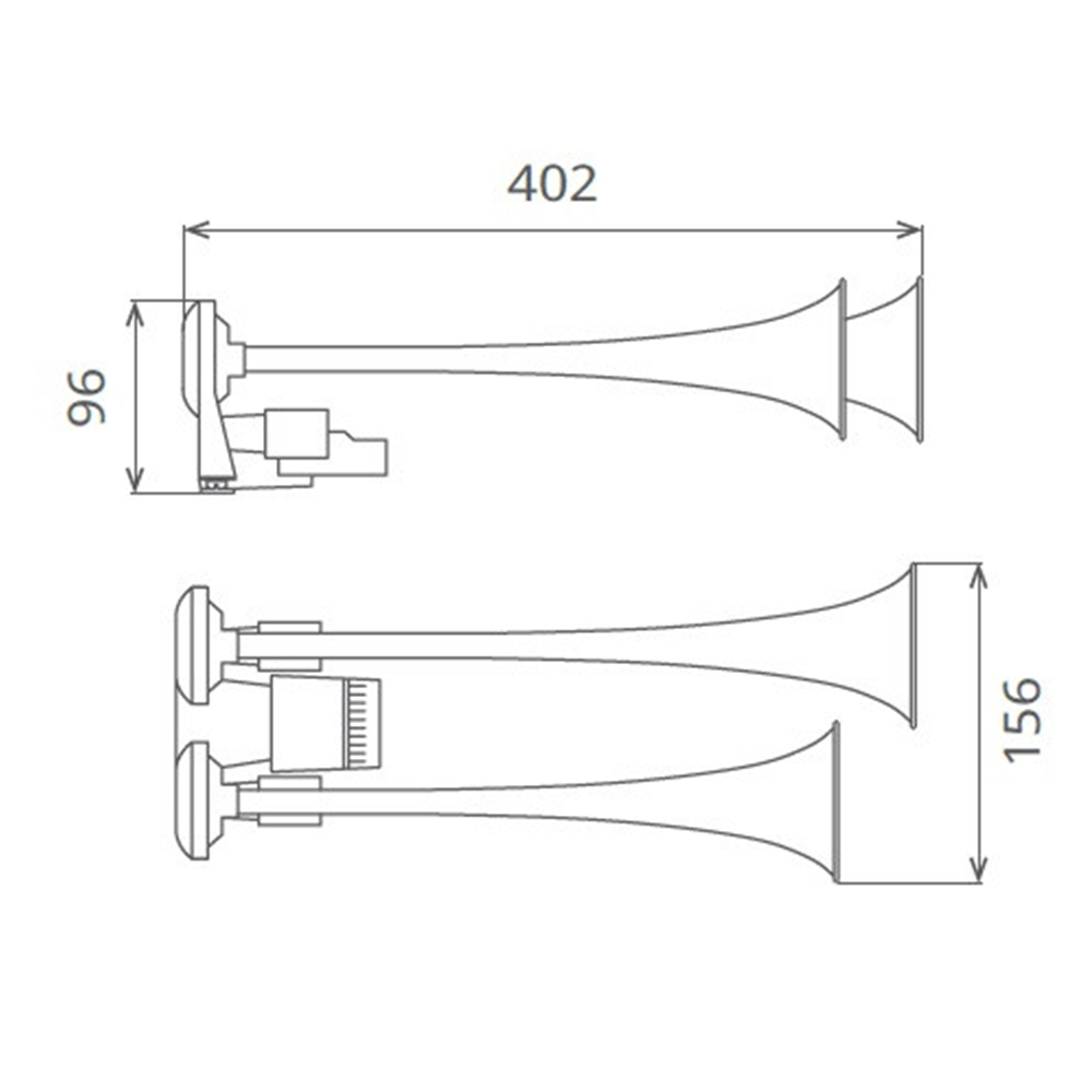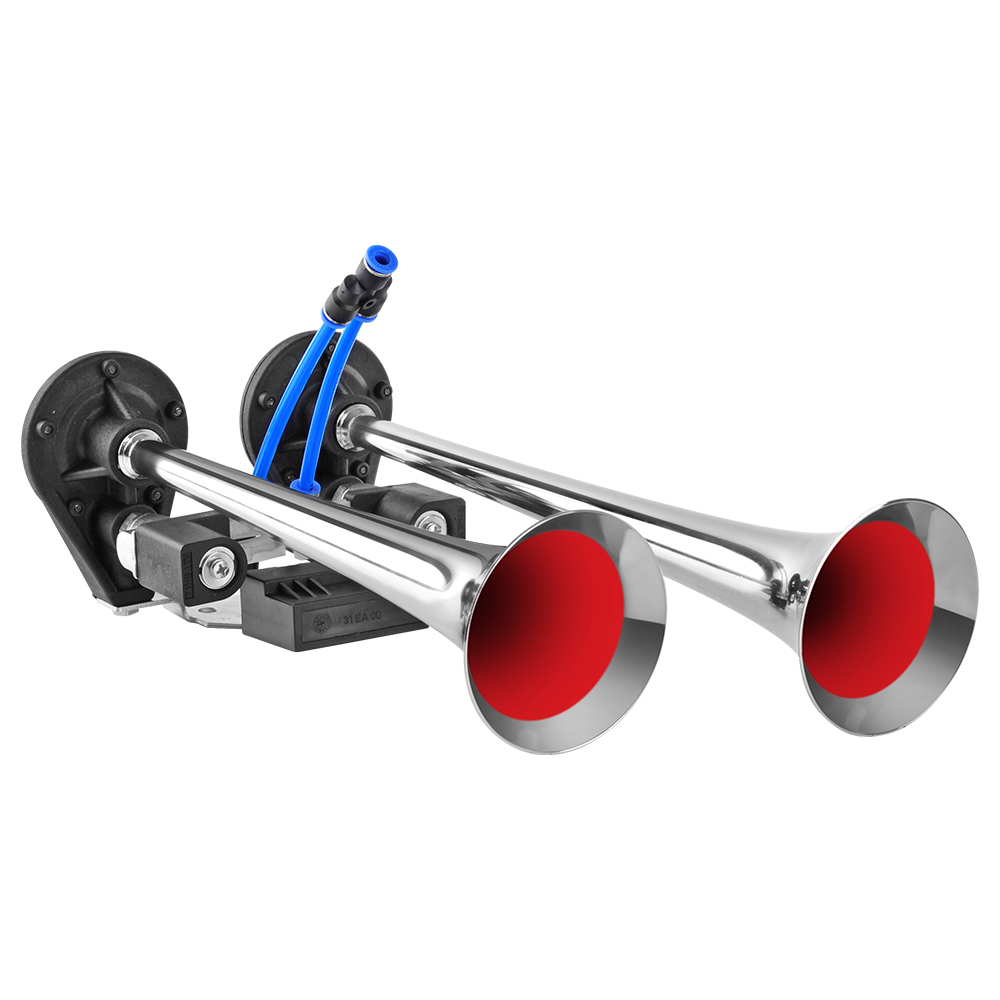 Claxon cu doua goarne cromate (lungime de 30 cm si respectiv 34 cm). Sunet alternativ remarcabil, bitonal. Doar pentru vehicule echipate cu sistem de aer comprimat.