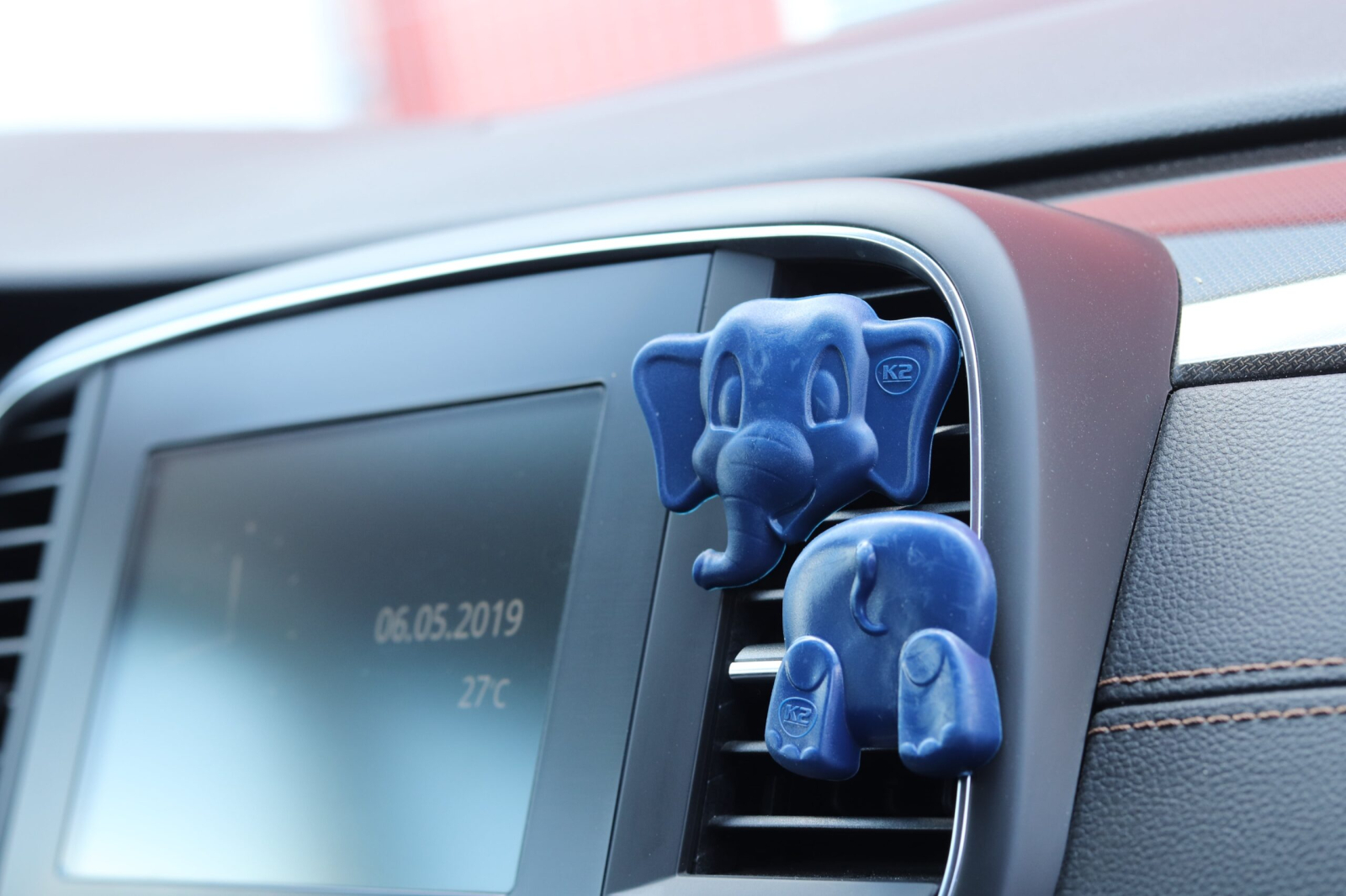 Am combinat această aromă unică cu o formă amuzantă de odorizant în formă de elefant polimer pentru orificiul de ventilație. Drept urmare, a fost creat parfumul auto K2 ARLO BRAND NEW CAR, care, în ciuda formei sale lipsite de griji, poate surprinde cu un miros de lungă durată și poate umple interiorul cu o atmosferă originală.