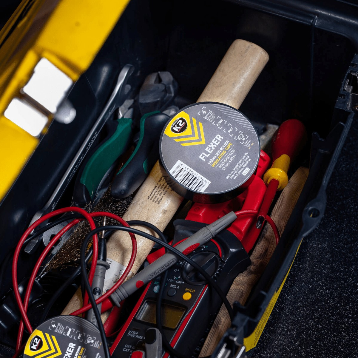 Banda izolatoare K2 Flexer este o bandă PVC universală, flexibilă, moale, cu un strat adeziv special care își păstrează proprietățile la temperaturi scăzute.