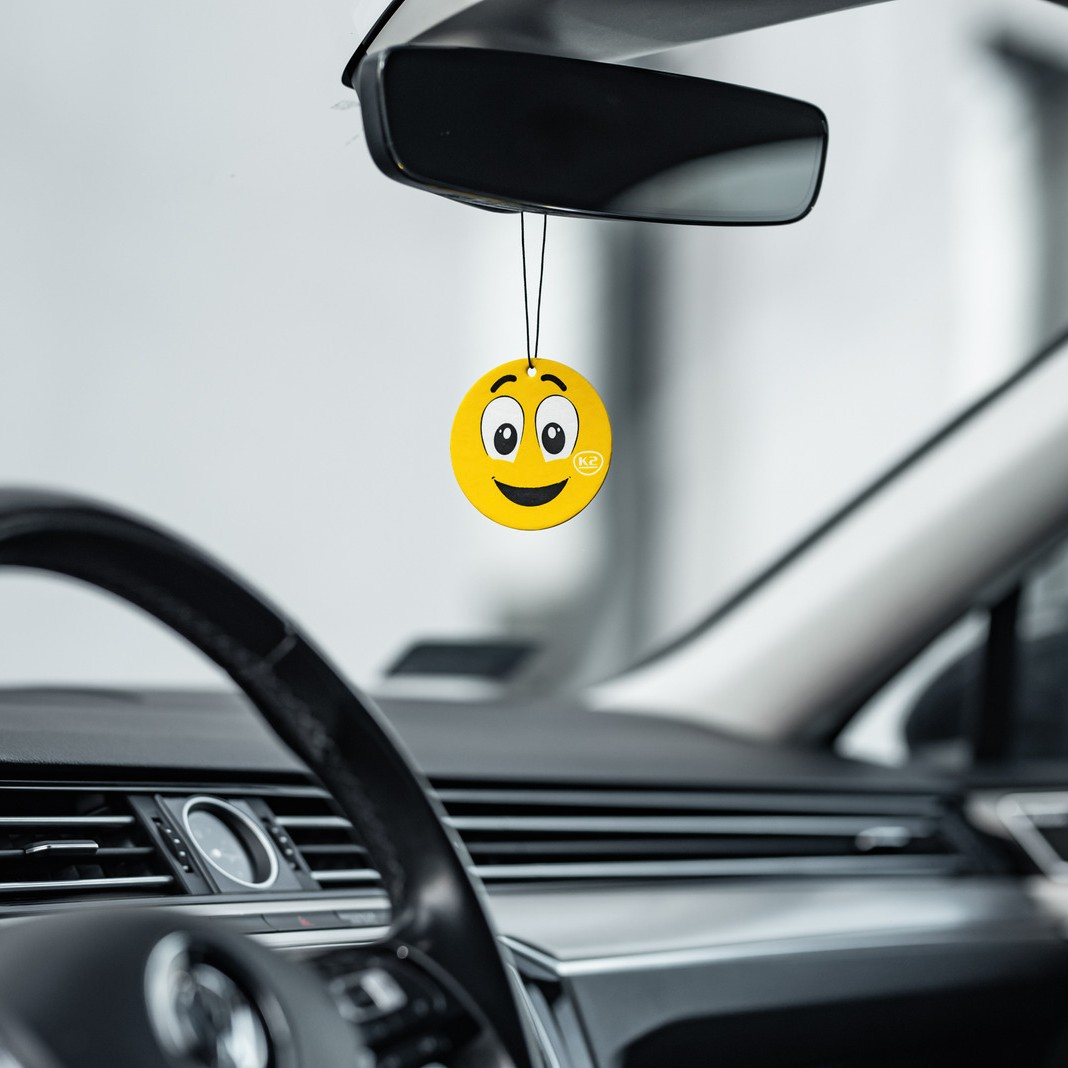 Alăturați-vă grupului de șoferi zâmbitori și simțiți vibrațiile pozitive :) cu un pandantiv vesel cu două fețe cu parfum de ceai verde proaspăt, vanilie orientală, mandarină dulce și parfum bărbătesc.