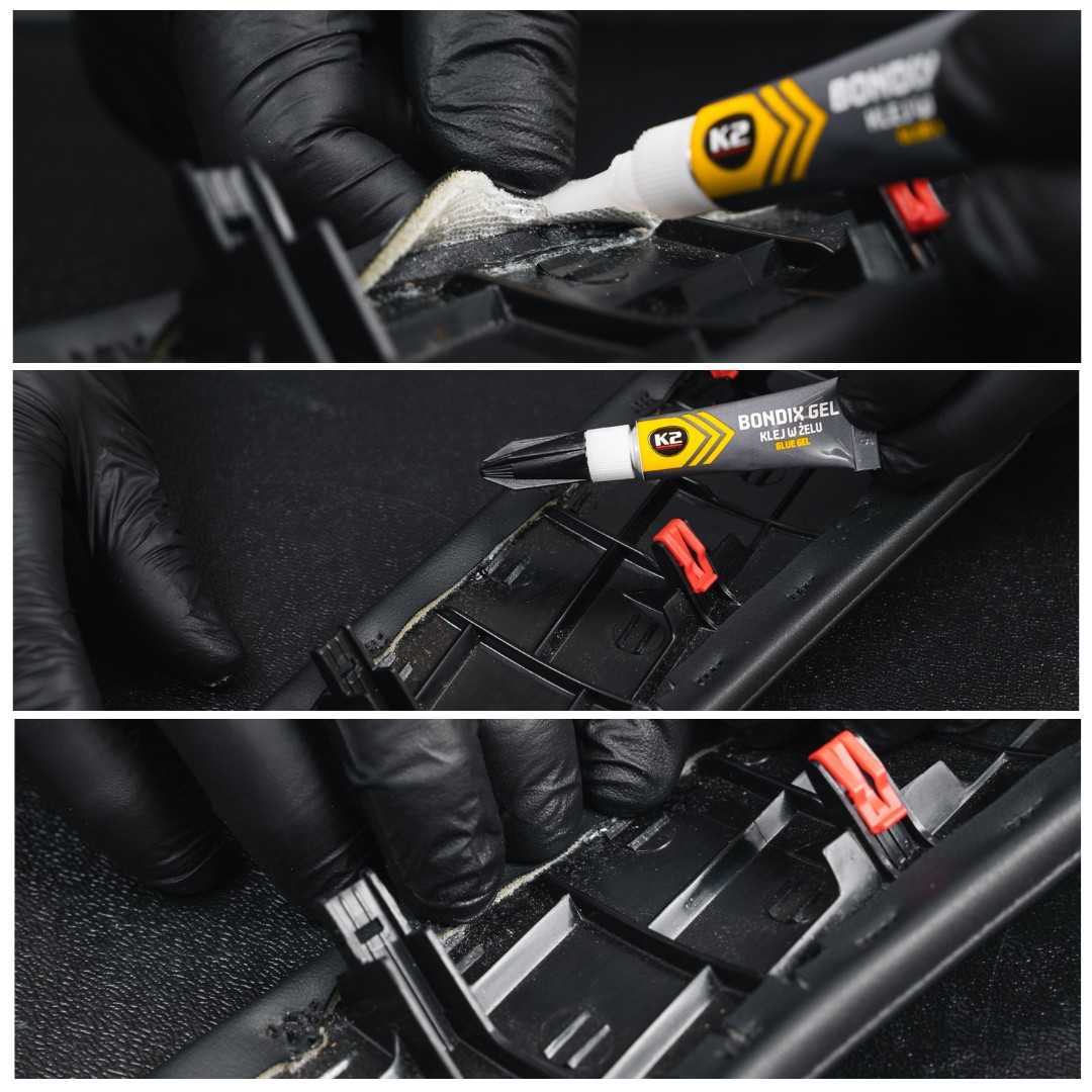 K2 BONDIX GEL este un adeziv gel cianoacrilat cu aderență ridicată și uscare rapidă. Este ideal pentru lipirea combinațiilor de materiale precum metal, plastic, lemn, țesături, hârtie, piele, bureți, etc. După uscare, are rezistență ridicată și rezistență la apă și uleiuri. Adezivul Bondix Gel, datorită timpului de priză și gamei largi de aplicații, este considerat un adeziv multifuncțional, des folosit în industrie, industria publicitară, atelier și casă.