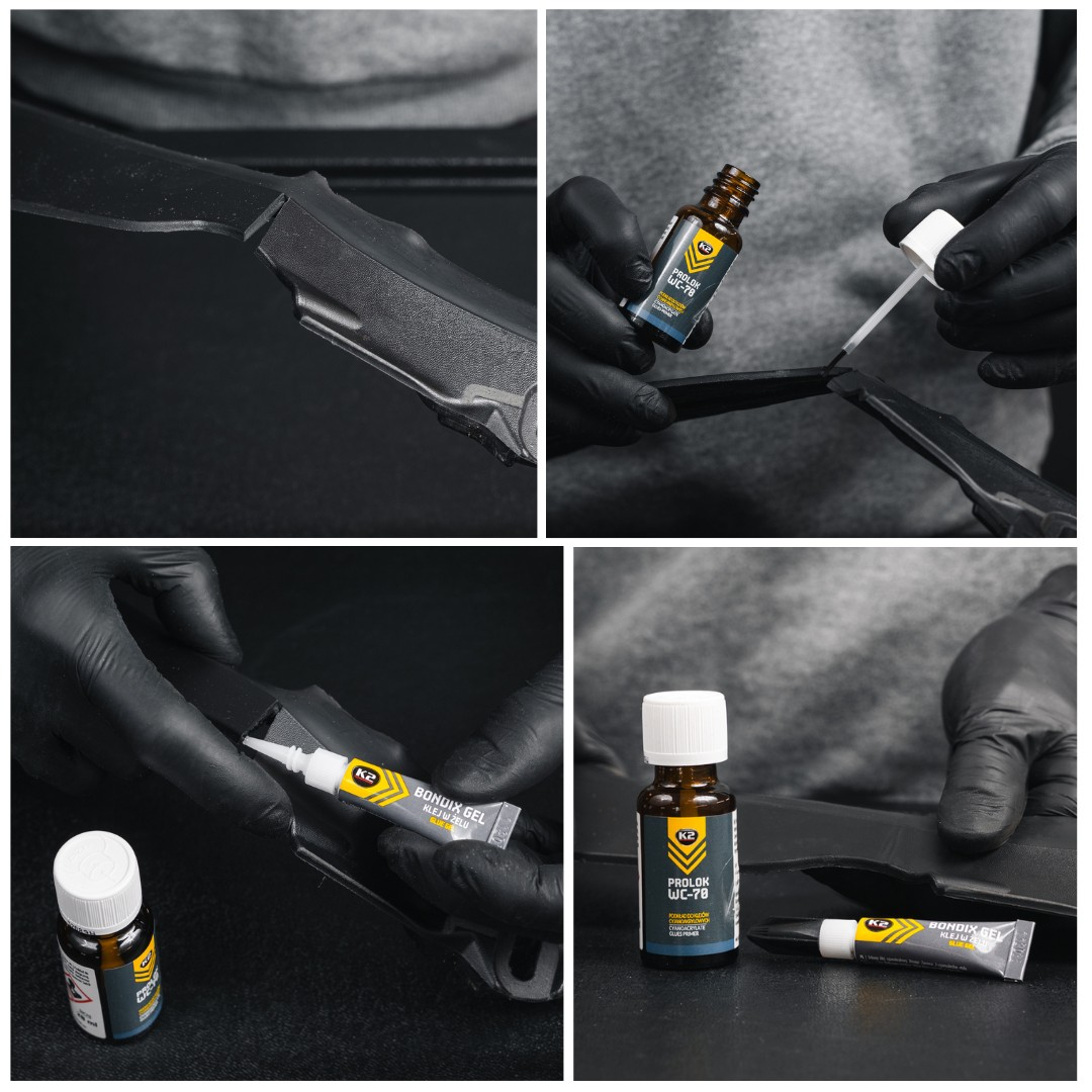 În combinație cu amorsa K2, PROLOK WC-70 lipește eficient materiale precum: polipropilenă (PP), polietilenă (PE), EPDM, politetrafluoreten PTFE și cauciuc.