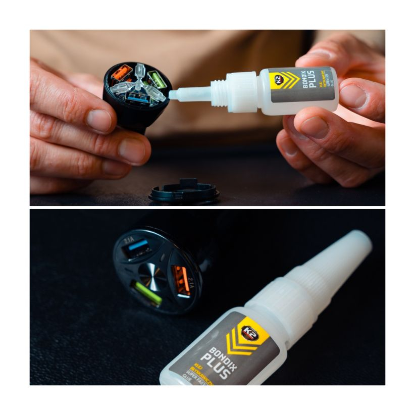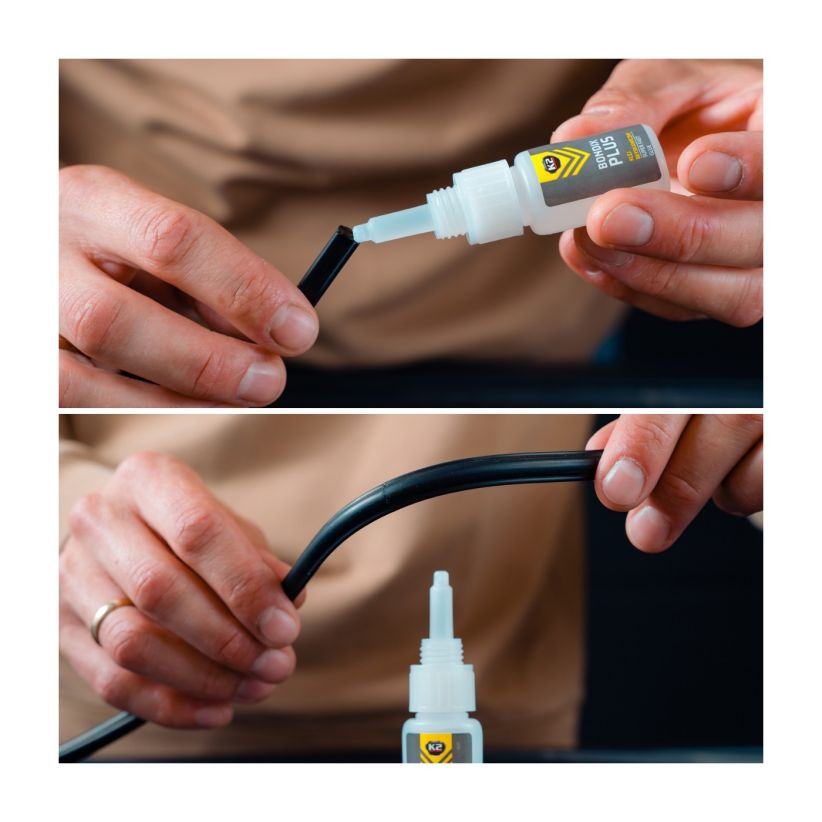 2. Aplicați o cantitate mică de superglue BONDIX PLUS pe una dintre suprafețele care urmează să fie lipite, asamblați-le pentru a obține un strat uniform și subțire de adeziv. Apoi apăsați-le ferm împreună timp de 15-20 de secunde. Cu cât stratul de adeziv este mai subțire, cu atât conexiunea va fi mai puternică.
