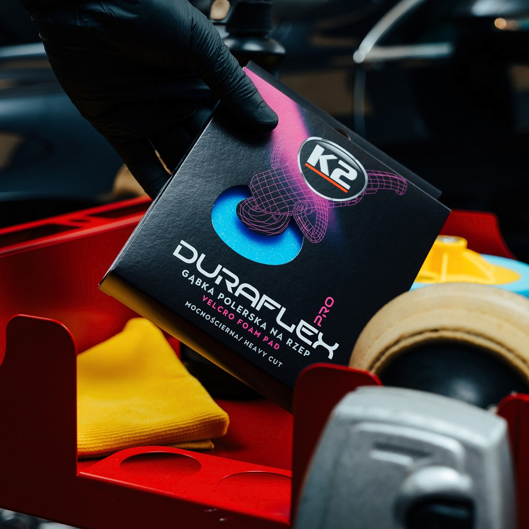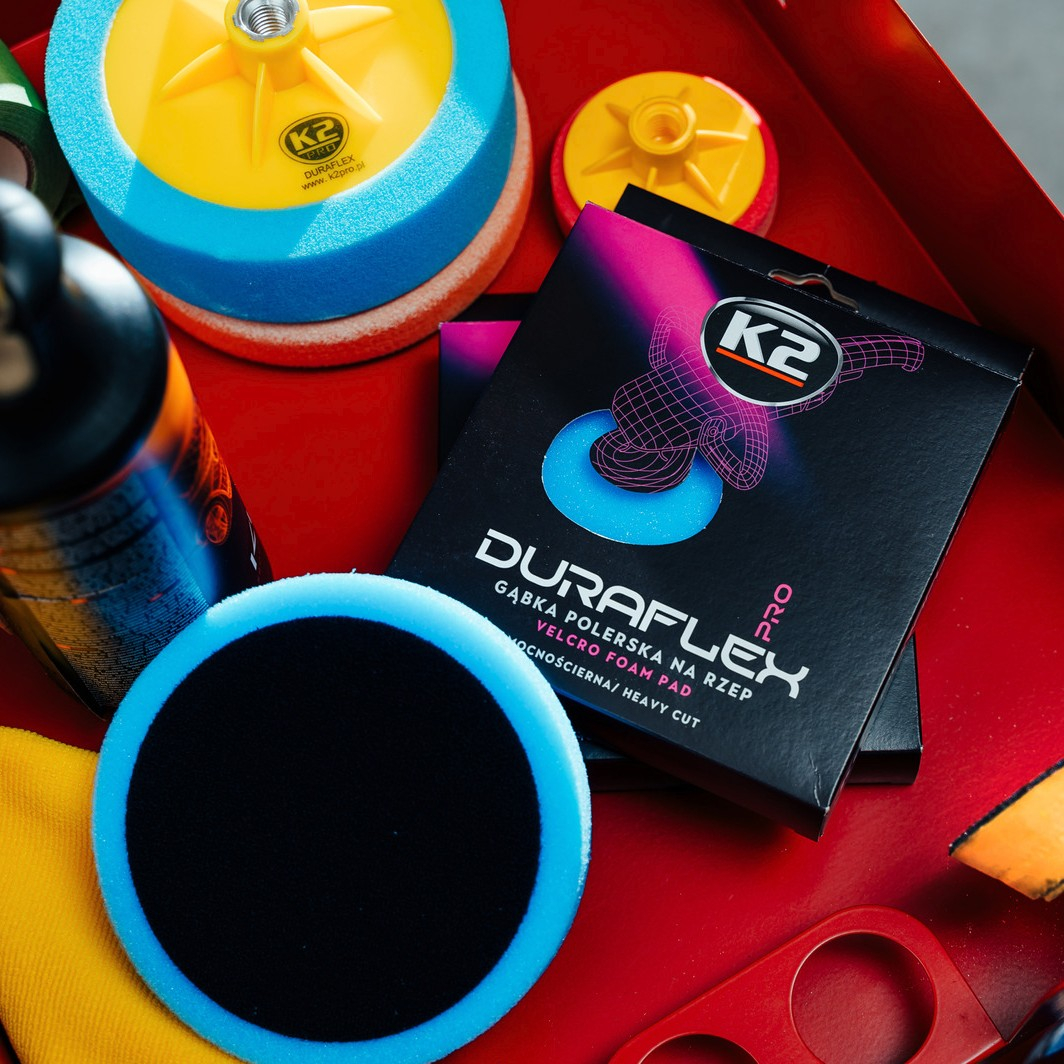 Bureții de lustruit profesioniști cu fixare convenabilă cu Velcro sunt accesorii convenabile de lustruire care ajută la restabilirea strălucirii curate a vopselei. Manopera atenta si materialele de cea mai inalta calitate combinate cu pastele de lustruit K2 iti vor permite sa obtii un efect perfect prin indepartarea tuturor imperfectiunilor si zgarieturilor. Acesti bureti sunt destinati lustruirii diferitelor tipuri de vopsea la o viteza maxima de 2500 rpm. Fabricate din spume cu celule deschise de cea mai înaltă calitate, reduc la minimum căldura generată, făcând lustruirea mai sigură și mai eficientă, făcându-le ideale pentru atelierele profesionale și utilizatorii pretențioși. Bureții de lustruit Duraflex sunt super durabili, așa că vor rezista multe ore de lustruire a vopselei. Acestea permit lustruirea ușoară și precisă chiar și a celor mai solicitante elemente ale caroseriei. Forma lor ergonomică asigură eficiență maximă, confort de utilizare și siguranță în timpul lustruirii, ceea ce le face parte integrantă din fiecare atelier sau garaj. Datorită acestora, orice suprafață poate căpăta strălucire și poate arăta ca nouă. Împărțirea în culori permite identificarea ușoară a durității și utilizarea buretelui. burete albastru - duritate mare a spumei, garantează o forță mare de tăiere, permițându-vă să îndepărtați zgârieturile adânci de pe vopsea burete portocaliu - duritatea medie a spumei și proprietățile sale abrazive optime permit folosirea buretelui și în corectarea vopselei într-o singură etapă, tamponul, datorită structurii sale, îndepărtează eficient zgârieturile și permite obținerea unui luciu ridicat al suprafeței lustruite. burete negru - realizat din spumă super moale, vă permite să eliminați eficient hologramele și să obțineți un efect de oglindă, permite suplimentar aplicarea mecanică și sigură a agenților de curățare și a cerurilor, datorită cărora putem proteja rapid vopseaua. Date tehnice: diametru: 150 mm grosime: 25 mm diametru de montare: 125 mm montare: Velcro