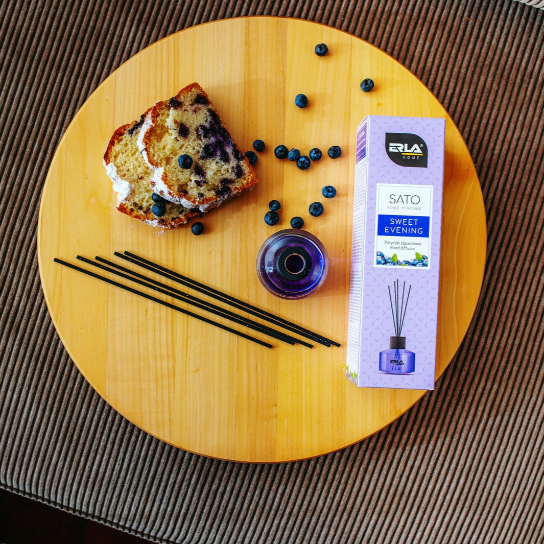 Erla Sato este un odorizant elegant sub forma unui difuzor de parfum cu bețișoare. Elegant si practic. Datorită acestuia, puteți reîmprospăta și decora cu ușurință orice spațiu, acasă, la birou sau oriunde doriți. Compozițiile unice de parfum vor schimba atmosfera din interior și o vor umple cu un parfum care va dura până la 6 săptămâni. Erla Sato sunt bețișoare de parfum extrem de rezistente care pot fi folosite cu succes și pentru a masca orice miros nedorit. Sticla minimalistă și elegantă cu ulei parfumat este o soluție extrem de convenabilă. Odorizantul cu bețișoare funcționează pe principiul difuziei și nu necesită căldură sau energie. Îl poți plasa în locul tău preferat. Bețișoarele sunt înmuiate automat cu parfum și îl eliberează treptat. Intensitatea parfumului Erla Sato poate fi reglată datorită bețișoarelor. Cu cât sunt mai multe bețișoare scufundate în esență, cu atât mirosul este mai puternic. În spații mari, odorizantele SATO pot fi combinate pentru a crea propriile tale compoziții de parfum unice. Cu caracterul său aromat și familiar, oferă o plăcere unică, oferă confort, calmează și relaxează. Ne duce în fața flăcării trositoare a șemineului, unde ne bucurăm de o seară liberă sub o pătură caldă cu o bucată de tort cu afine.