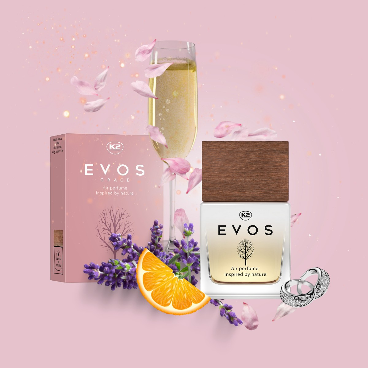 Parfumul auto K2 EVOS GRACE este o compoziție extraordinară, inspirată din natură, de note de parfum unice, concepută pentru interioarele mașinilor moderne. Conducerea unei mașini devine o plăcere, un răgaz și o evadare în lumea rafinată a luxului. Compozițiile de parfum special selectate cu uleiuri esențiale captivează prin bogăția și profunzimea parfumului lor.