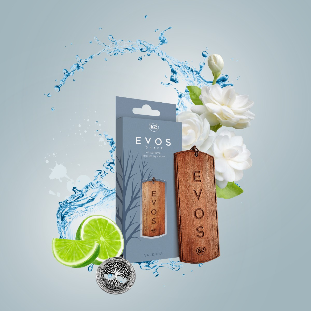 K2 EVOS Grace este un odorizant extraordinar de masina sub forma unui pandantiv din lemn, inspirat din natura si plin de farmec. Fabricat din lemn masiv cu gravare pe două fețe, decorează interiorul mașinii ca niște bijuterii parfumate.