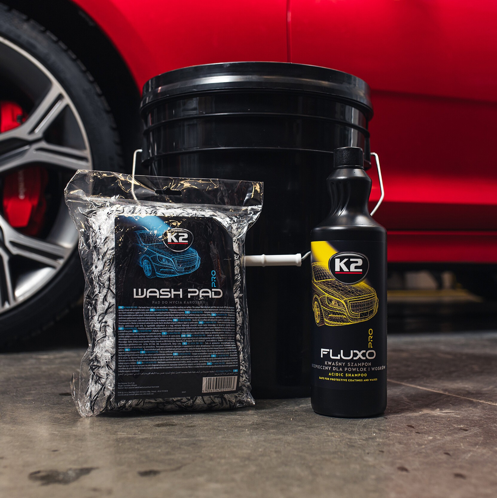 K2 Fluxo Pro este un șampon foarte concentrat, cu spumă redusă, cu un pH acid (pH ~4), creat pentru îngrijirea profesională a mașinilor protejate cu straturi ceramice, cuarț sau ceară. Formula sa unică, fără aditivi inutili, îndepărtează eficient contaminanții, inclusiv depozitele minerale, restabilind proprietățile hidrofobe inițiale ale acoperirilor și strălucirea profundă. Perfect pentru curățarea vopselei înainte de aplicarea straturilor de protecție.