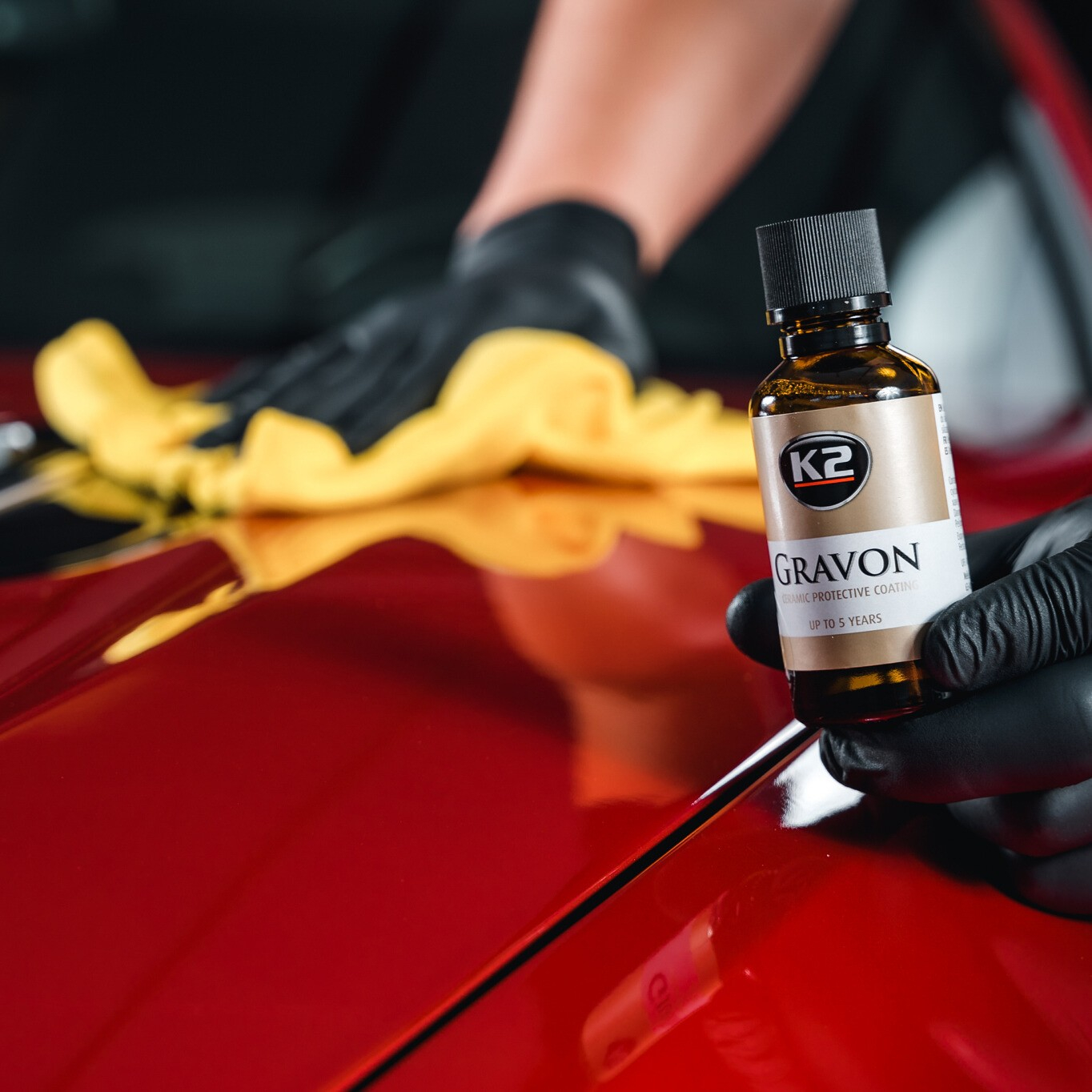 K2 GRAVON protejează suprafața împotriva zgârieturilor, murdăriei, razelor UV, sare, excremente de păsări, precipitații și seva copacilor, reziduuri de insecte, coroziune și deteriorări mecanice cauzate, de exemplu, de pietrele care lovesc corpul. Protejează vopseaua împotriva formării de defecte care reduc luciul, reduc riscul de formare a zgârieturilor circulare. Datorită acoperirii ceramice, nu este nevoie să ceară mașina, iar datorită proprietăților sale excelente de respingere a murdăriei și de autocurățare, frecvența de spălare poate fi redusă, spre deosebire de ceară, acoperirea ceramică nu poate fi spălată cu substanțe chimice de ce este cea mai durabilă metodă cunoscută de protecție a suprafețelor. Singura modalitate de a îndepărta stratul este să-l lustruiți cu mașina. Acoperirea ceramică protejează și împotriva graffiti-urilor, vopseaua aplicată nu se lipește de suprafață și poate fi îndepărtată cu ușurință.