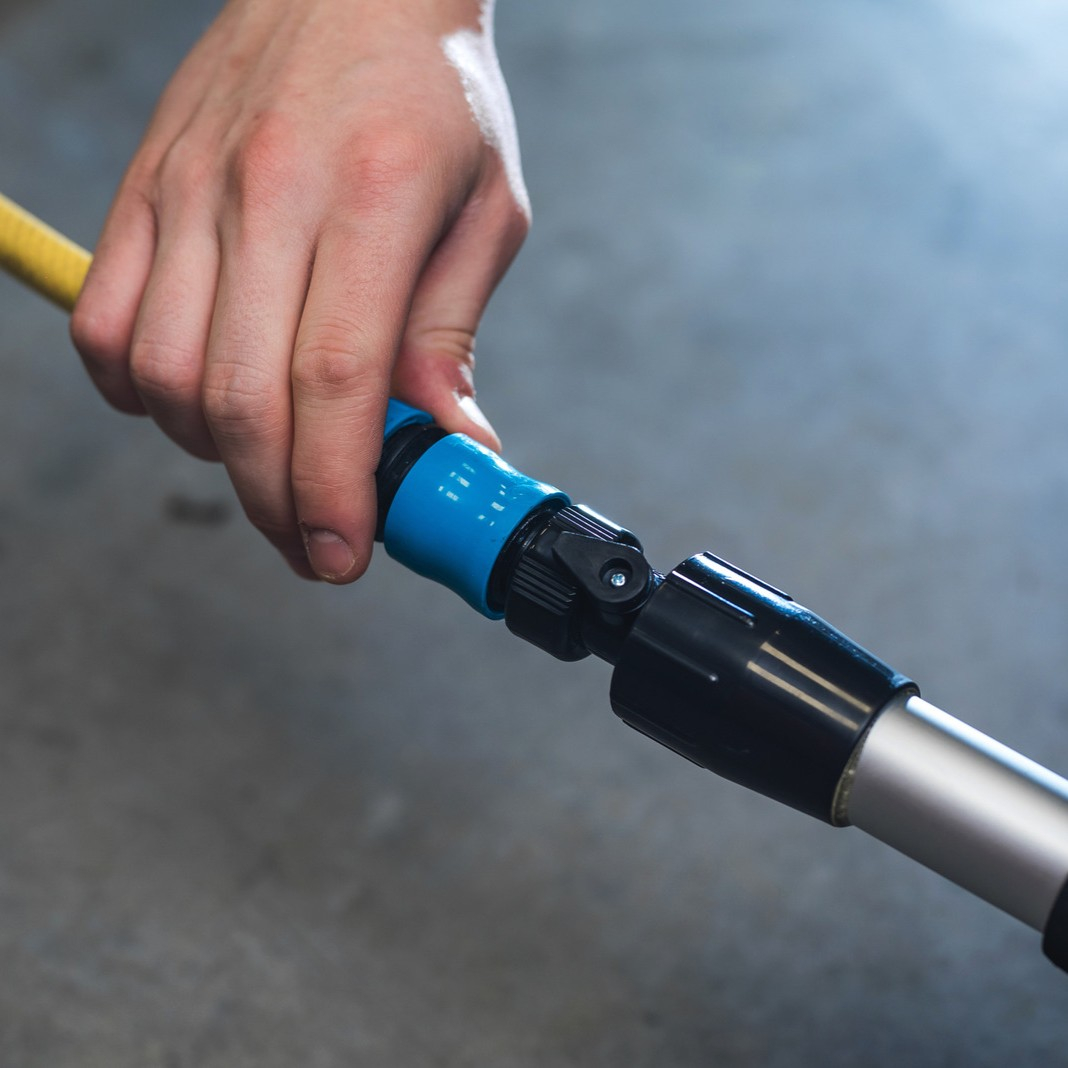 Perie recomandată pentru spălare cu găleată (dimensiune adaptată). Are un maner din aluminiu cu filet, ergonomic, rezistent, ideal pentru curatarea locurilor inalte.