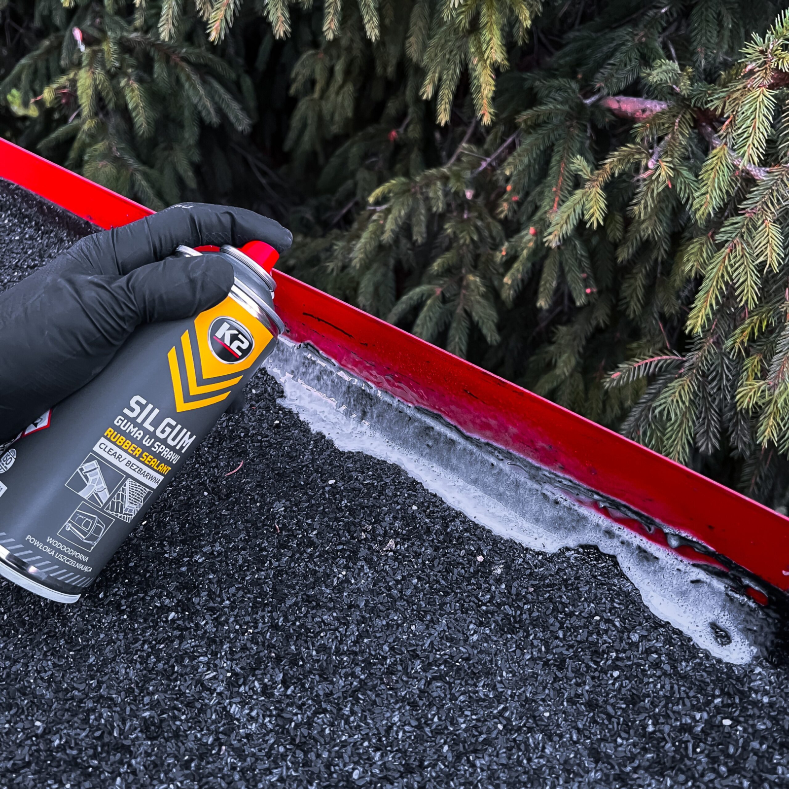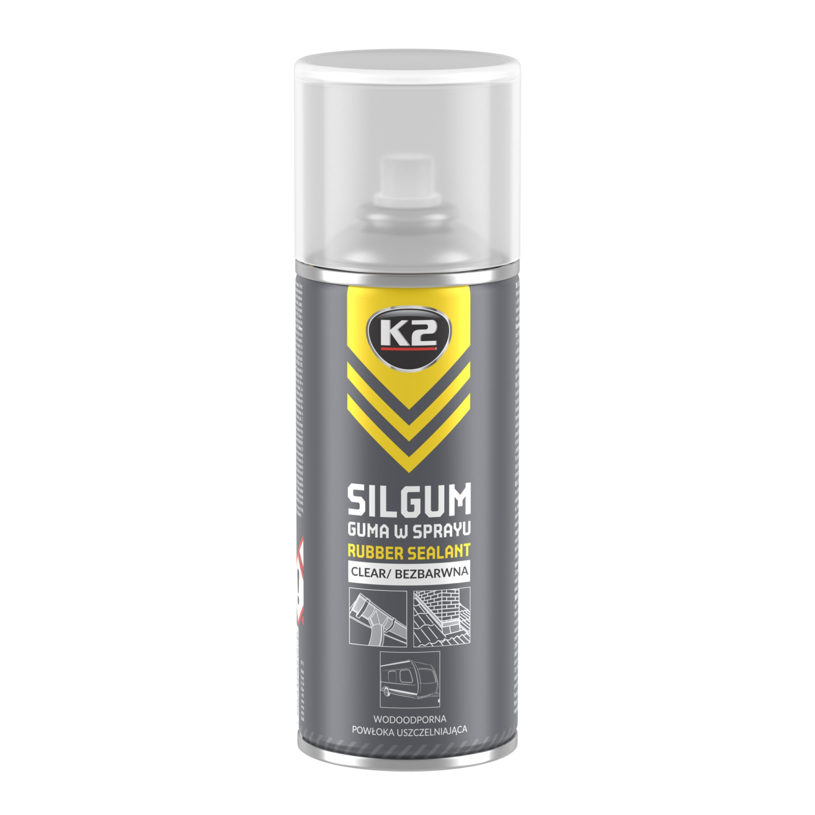 Sigilantul spray K2 Silgum este oferit în două culori: ca sigilant transparent prin pulverizare și ca sigilant negru pentru acoperiș.